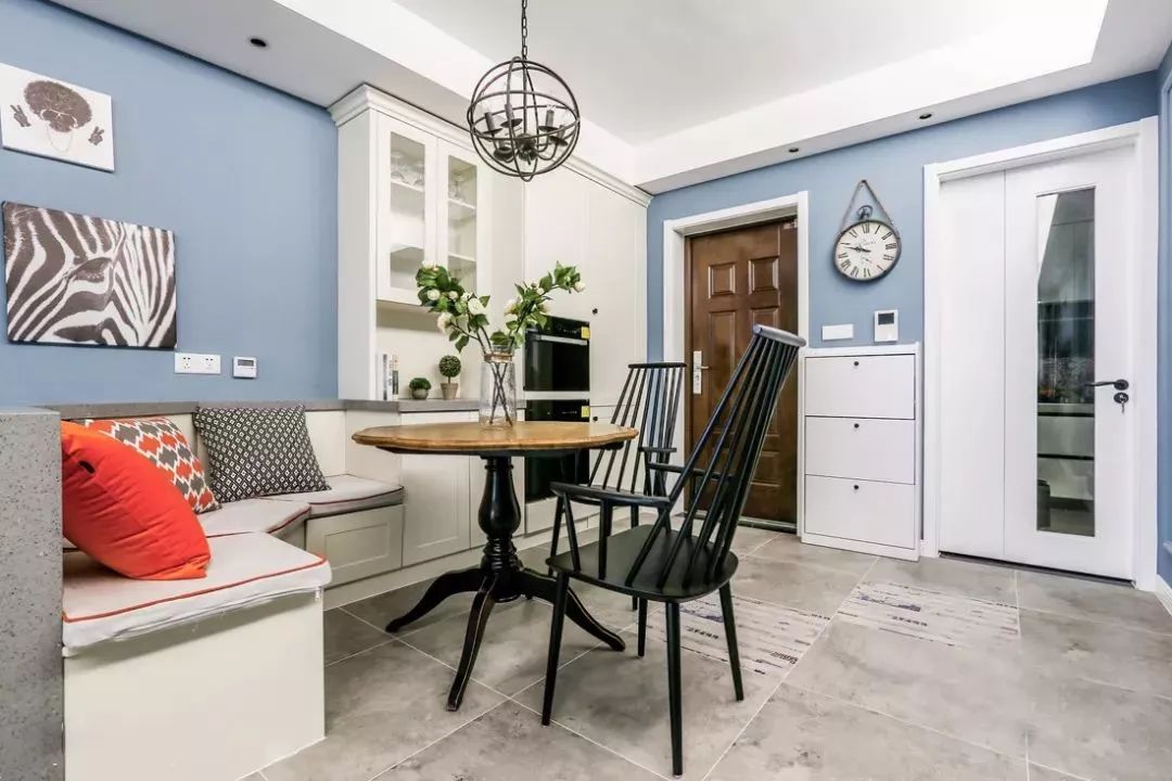很多小户型都没有玄关走廊,入户就是餐厅,那么餐边柜也可以承担起玄关鞋柜的功能,把两个柜子结合起来,能节约一些空间。