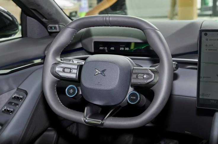 接着来看内饰,全新小鹏P7在内饰设计中融入了简约的元素混搭,其中三幅式多功能方向盘更换为与小米SU7类似的“上下平底运动方向盘”,功能按键的左右两侧还配有模式切换快捷操作按键,丰富了座舱的精致气息。整个中控台的布局简单无杂,空调出风口为常见的贯穿式布局,中控屏采用悬浮式设计,底部取消了传统的物理实体按键,从门板扶手到仪表台可以看到大面积的软性面料包覆,细节区域加以镀铬元素的点缀,层次感相当不错。值得一提的是,前排座椅的坐垫前端还有一些延伸,对腿部的承托可能会好一些。