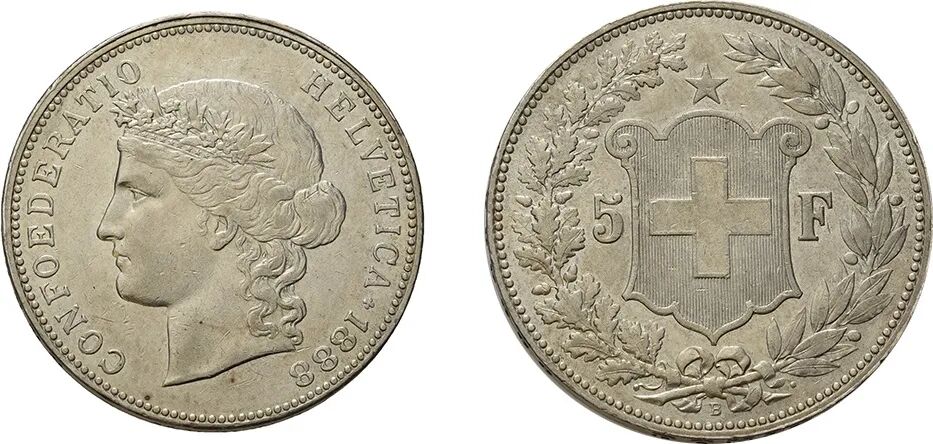 瑞士最后一次发行赫尔维蒂女神头像5法郎