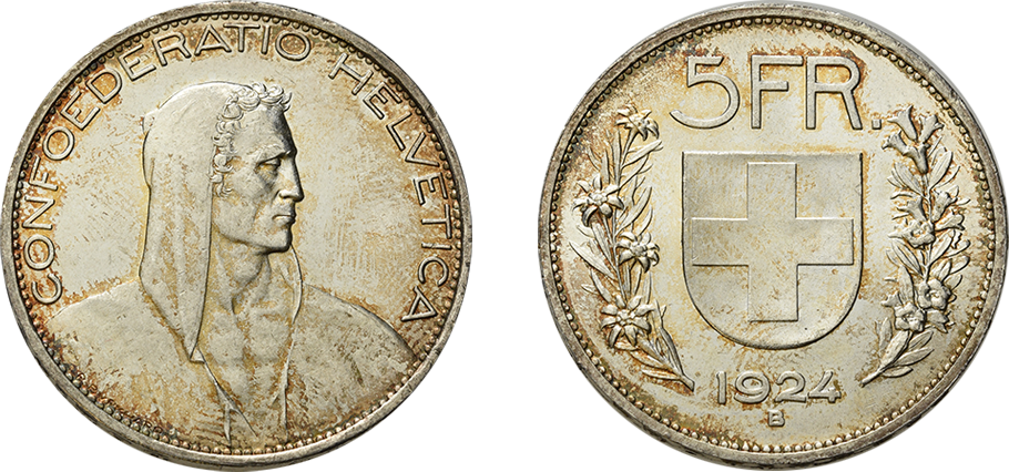 在这篇文章中,笔者会为大家解释为什么1928年的5法郎在记载中发行了23971枚,但实际存世比发行量更稀有;以及导致瑞士国内很长一段时间以来只能流通瑞士本国货币这一情况的历史发展。