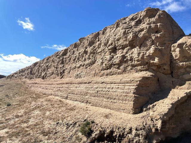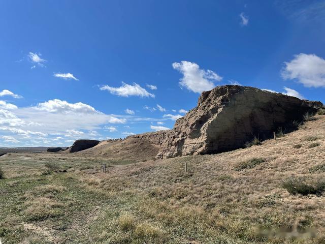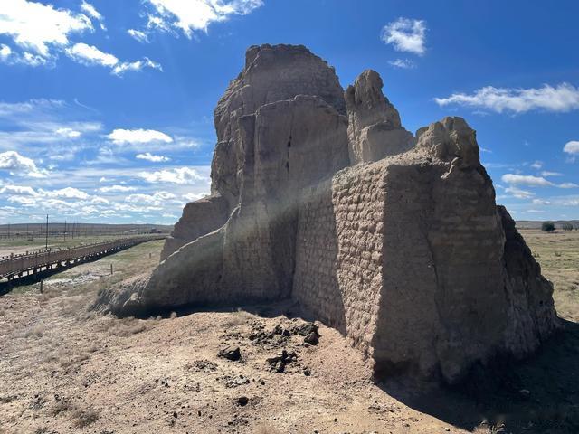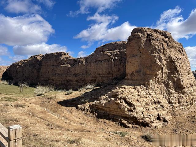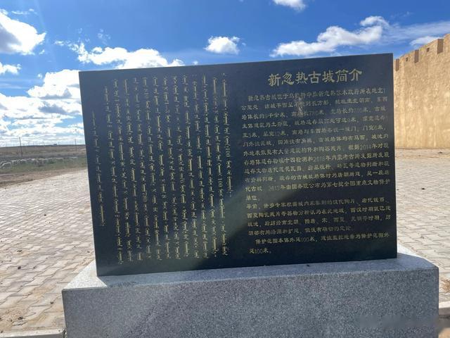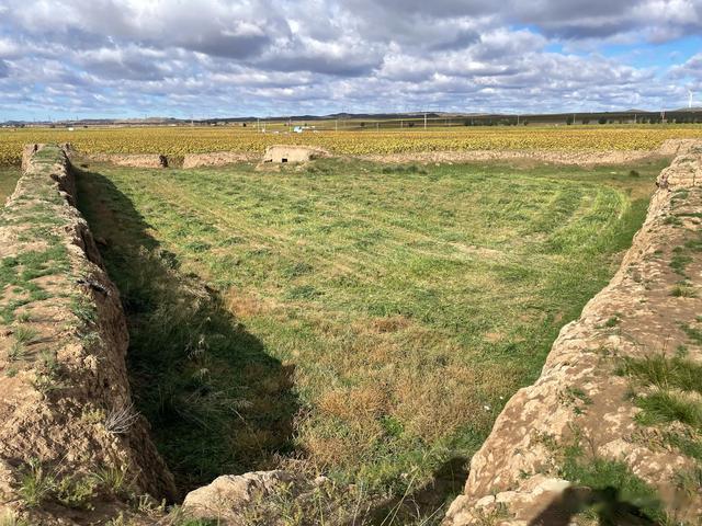 【新忽热古城简介:新忽热古城址是目前发现的内蒙古阴山以北草原地区古代城址中整体保存较好、规模最大的城址。古城平面呈长方形,南北长约 900米,东西宽约 790 米,方向为 190。东、南、西三面墙体中部各设有1座城门,城门外均有长方形瓮城,城墙东南角、西南角保留有角台;墙体上有马面共计 17 座,其中东、南、西三面墙体各4 座,北墙5座。城墙现存高度最高可达9米,底部残宽平均为8米,保存较好的墙体项部厚约4米。墙体建造方法为夯土版筑,建造时采用纴木结构。东、南、西三面墙体建造材料为粉土。早前,许多专家根据城内采集到的汉代陶片、唐代钱币、西夏陶器残片等物分析,认为在此地域西汉时期就已给建城,是时为汉塞外受降城,后历经南北朝、隨唐、宋、西夏、元明等时期历朝都有所沿用和扩建。虽然经 2018 年内蒙古考古研究所局部考古和 2014 年的碳十四证实现存古城墙体为唐代修建,但对汉代已建城和历朝都有所沿用的说法还没有一个令人信服的否定答案。2018 年内蒙古自治区文物考古研究所对该城址进行了考古发掘,绪合相关史料记载和对古城发掘遗存的唐代莲花瓦当、房基柱杵、砖瓦等遗物判断,新忽热古城时为唐朝郭子仪的横塞军治所。】