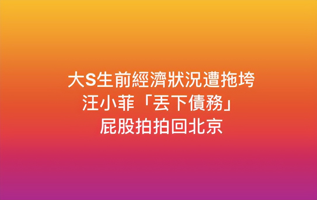 S一家人目前的目标很明确,就是抓住汪小菲2.5亿元新台币的债务不放,以此推进抚养权的谈判。而汪小菲此前就和大S在这笔债务上存在分歧,彼此的官司也没有间断过,显然他不会这么轻易答应偿还。