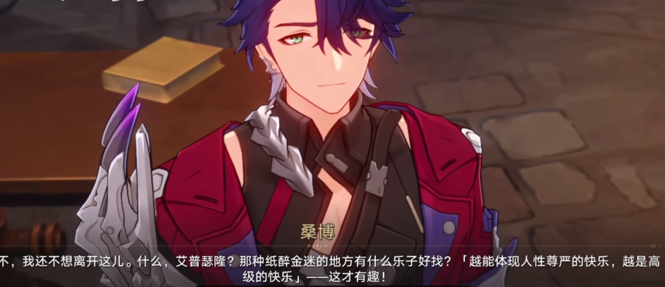 对于桑博而言“越能体现人性尊严的快乐,越是高级的快乐”,他还提过自己的愿望就是“希望世上人人幸福、快乐、自由,得偿所愿”,在花火的语音中还吐槽过桑博,说他“最大的问题是…还有底线”。