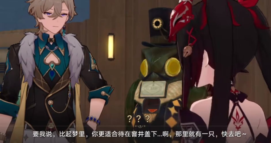 当我们进入流梦礁后,花火又变成了知更鸟,安抚因为谐乐大典骚动而恐慌的人们,为他们送上一份礼物(花火的炸弹按钮)。在后续3.8版本中,我们得知花火埋的炸弹是希望将整个匹诺康尼都炸掉,以此来破除第三重梦境。