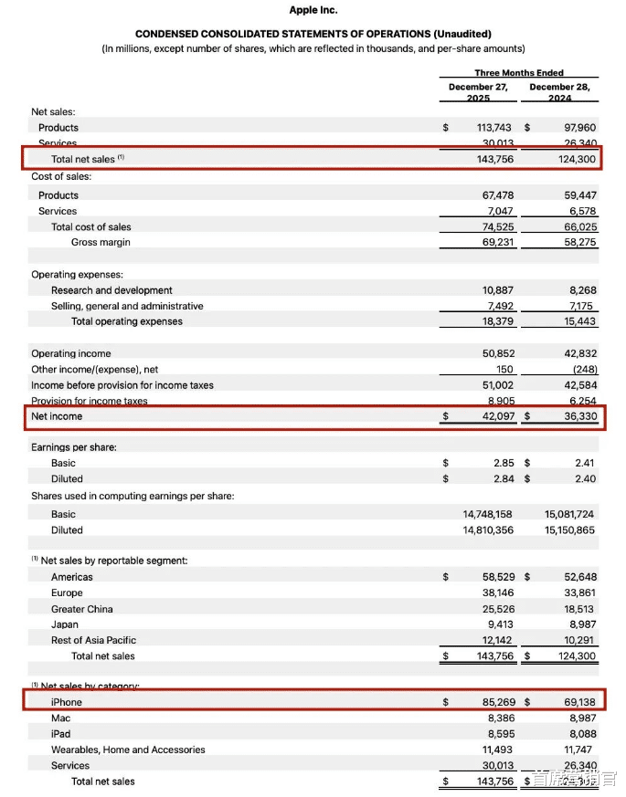 这份数据,来自苹果2026财年第一财季,统计周期截至2025年12月27日。