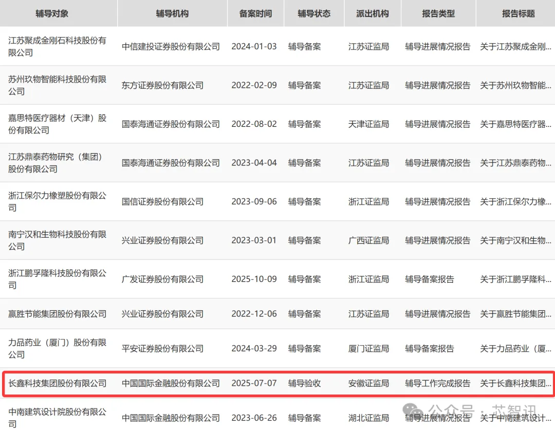 10月10日消息,据证监会官网披露,国内DRAM龙头企业长鑫存储母公司——长鑫科技集团股份有限公司IPO辅导状态变更为“辅导验收”。此时距离长鑫科技今年7月初提交上市辅导备案也才过去了不到3个月,可谓是神速。