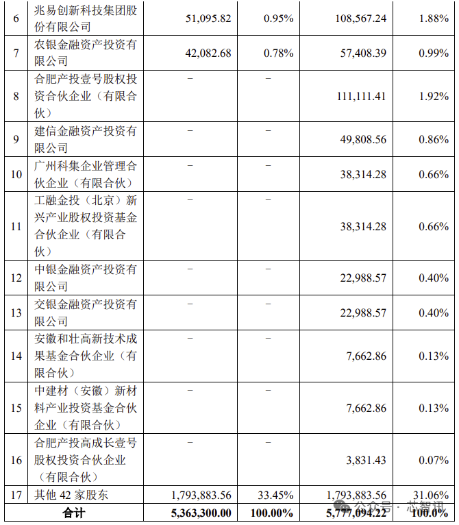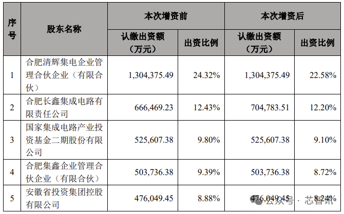 在该轮融资完成后,长鑫科技无控股股东,第一大股东合肥清辉集电企业管理合伙企业(有限合伙),直接持有公司21.67%股份。