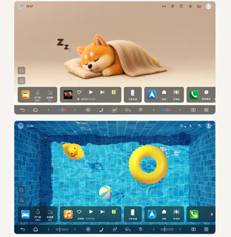 经过这次OTA升级后,比亚迪海鸥智驾版高配车型在车机UI界面上发生了巨大变化,新增多款萌宠、3D裸眼主题动态交互壁纸,这种风格有些类似于当前智能穿戴设备流行的UI设计,观感更生动有趣,增强了座舱智能交互感,尤其是在红绿灯停车等待的时候,趣味性得以加强。此外,全新OTA升级还带来了无麦K歌功能,在酷狗音乐、酷我音乐,以及QQ音乐的播放页当中,点击麦克风就能开启无麦K歌模式,虽说该功能已经被友商普及许久了,但这次更新到OTA新版本中,也算是对海鸥高配车款用户的一种弥补。