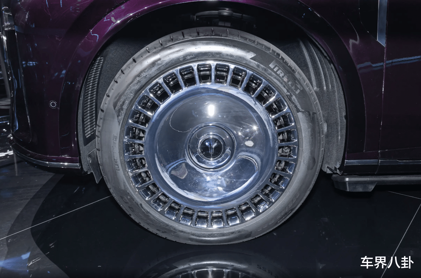 就是那个22英寸的“大饼”轮毂,电镀的,看着是挺晃眼,但喜不喜欢就看个人口味了。