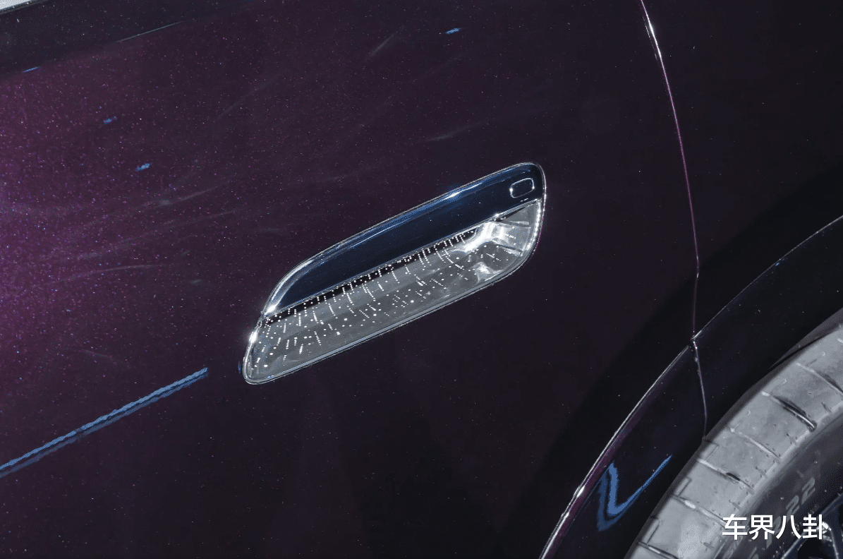 分体式大灯,DLP智慧投影,该有的都有。侧面那个半隐藏式门把手,里面还能发光,搞得跟星空似的,有点意思。
