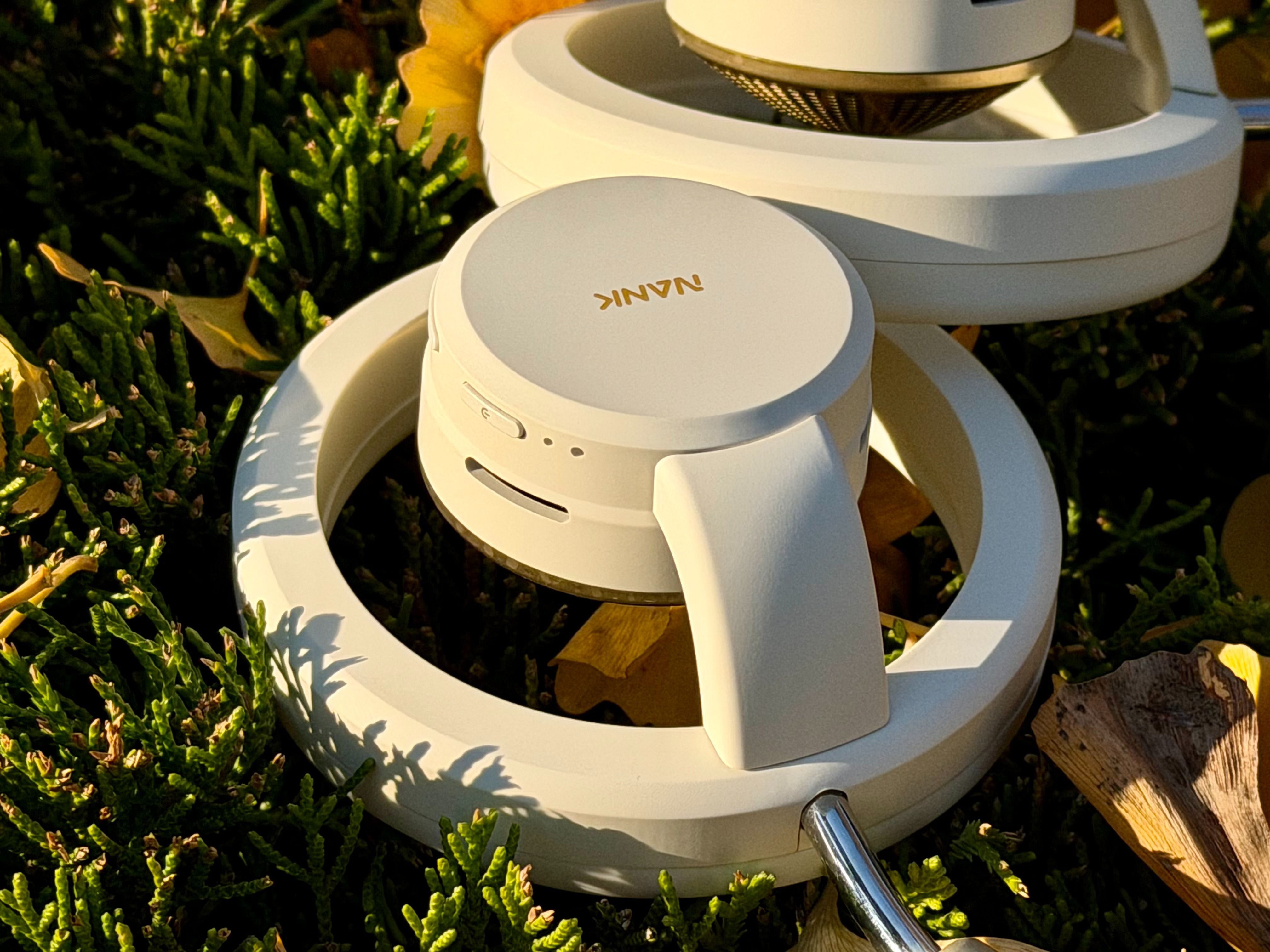 首先在外观上,南卡Bolt的颜值就非常高。开放式设计,白色皮革搭配金色的金属,很有质感。