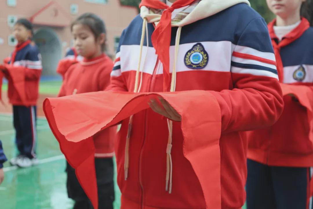 副校长胡洁向新队员表达了热烈的祝贺,并寄予深切期望:愿少先队员们在红领巾的引领下,志存高远,以先锋为榜样,既修身立德、勤学笃行,又全面发展、锤炼品格,努力成长为担当民族复兴大任的时代新人。