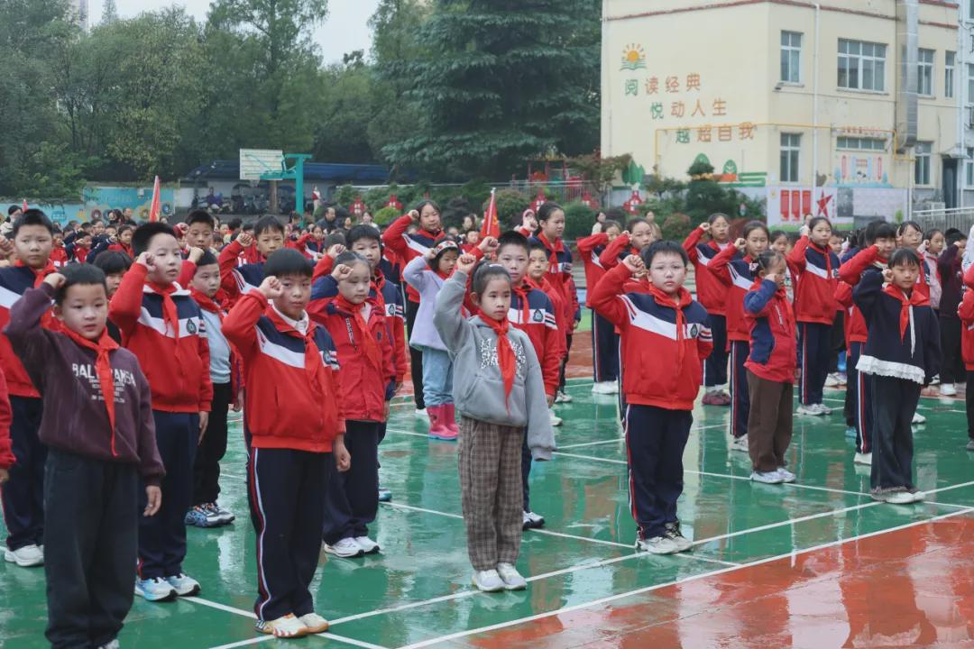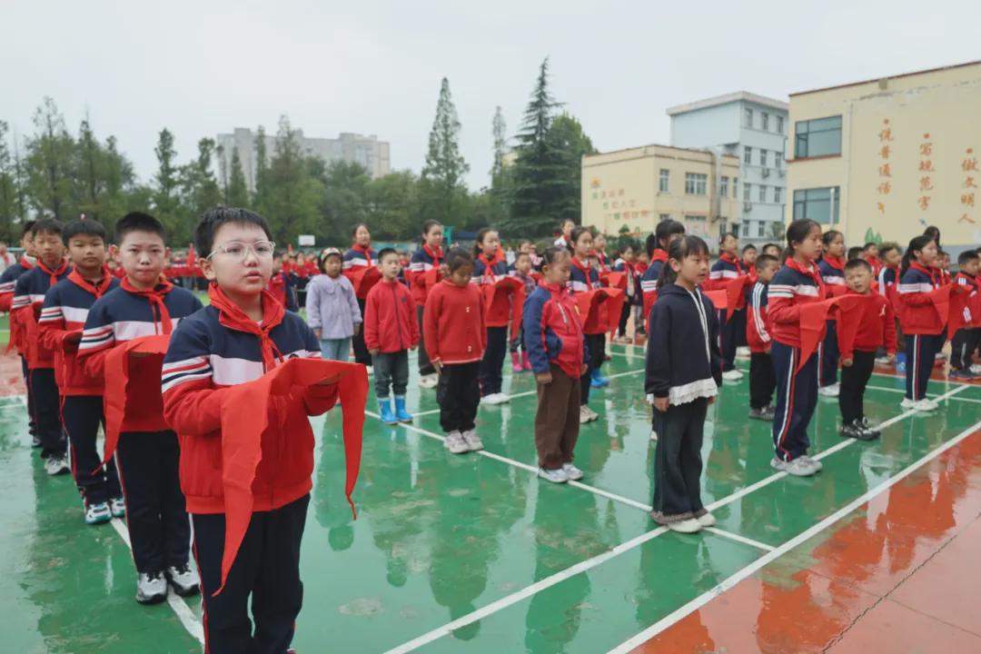 伴随着悠扬的退旗曲,队旗缓缓退场,全体师生肃立行礼。仪式在庄重而热烈的氛围中圆满落幕,而新队员们的红领巾故事,也自此翻开崭新的一页。