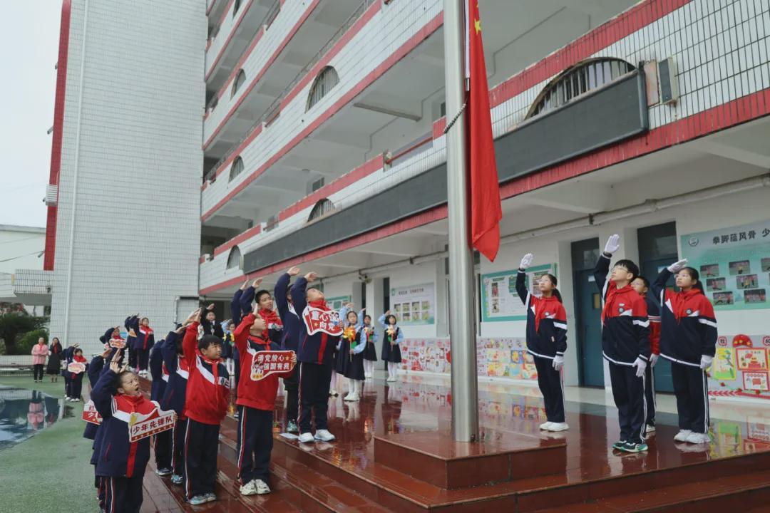 朝阳初升,霞光万道。嘹亮的国歌声中,五星红旗徐徐升起,迎风招展,全体师生肃立凝望,目光中饱含着对祖国的深情与敬仰。随后,中国少年先锋队队旗在激昂的出旗曲中庄严入场,队员们眼神如炬,信念如钢,将红色的基因与传承铭刻于心。