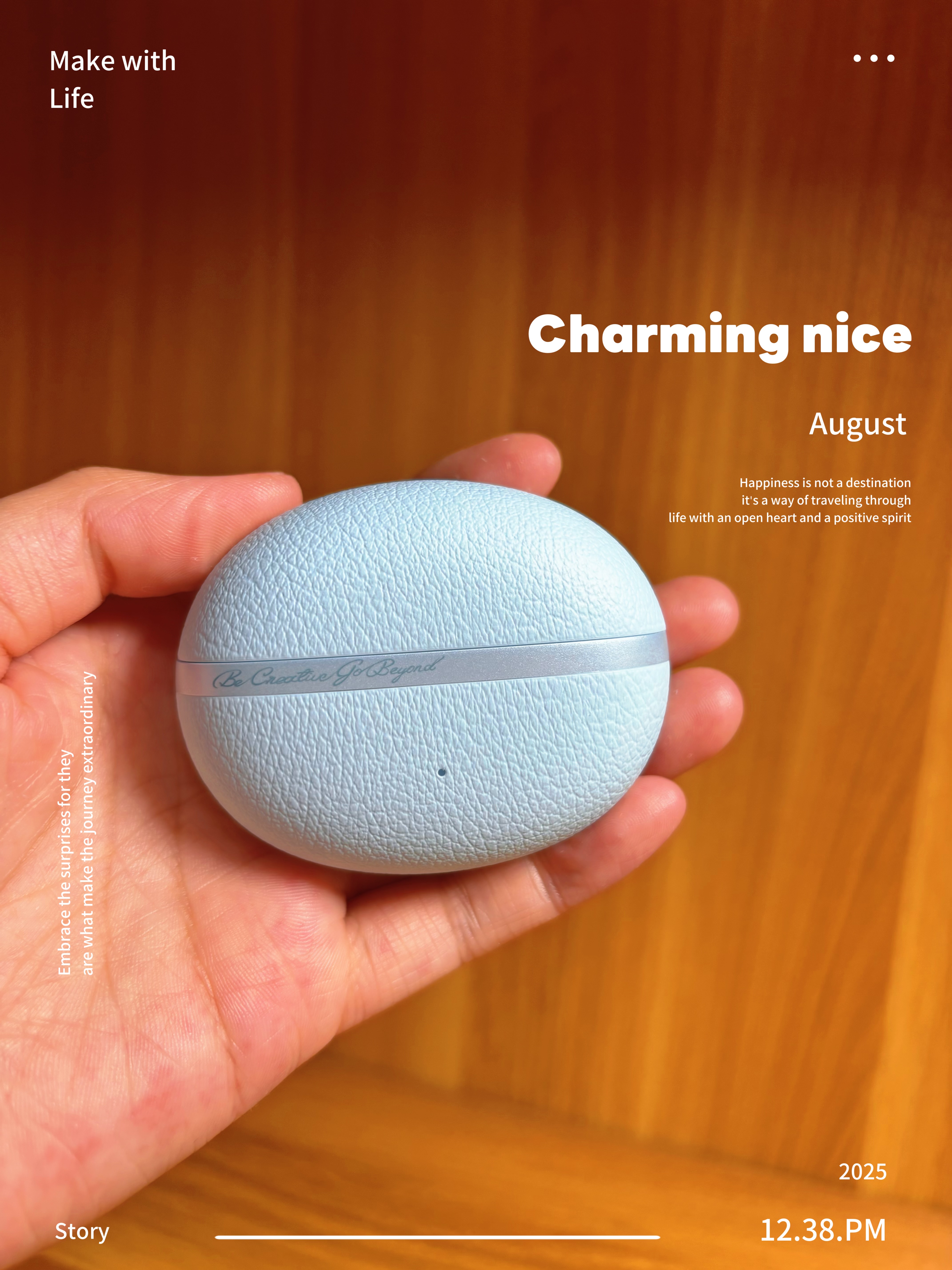 充电仓的荔枝皮纹更是戳中细节控——摸起来像轻奢包的皮质,完全没有指纹残留,比那些指纹收集器般的亮面设计高级太多。低饱和色系太懂穿搭党,我试了搭配白T恤和西装外套,耳机一戴瞬间提升精致度,再也不用为"戴耳机破坏造型"发愁。