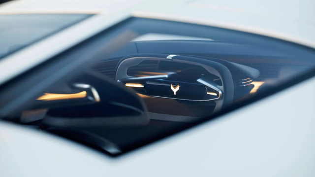 哑光黑车身如同一把利刃劈开空气,分裂式前脸的双透镜大灯冷若刀锋,主动式进气格栅随转速开合,仿佛机械巨兽的呼吸。侧面贯穿式腰线从前轮拱 “撕裂” 至车尾,20/21 英寸 staggered 轮毂像随时准备撕裂路面。最绝的是尾部悬浮尾翼,高速时升起的瞬间,320 公斤下压力如同无形的手将车身按在地面,而平时收缩的隐藏式排气口,只在全油门时露出獠牙 —— 这是对速度的绝对臣服。