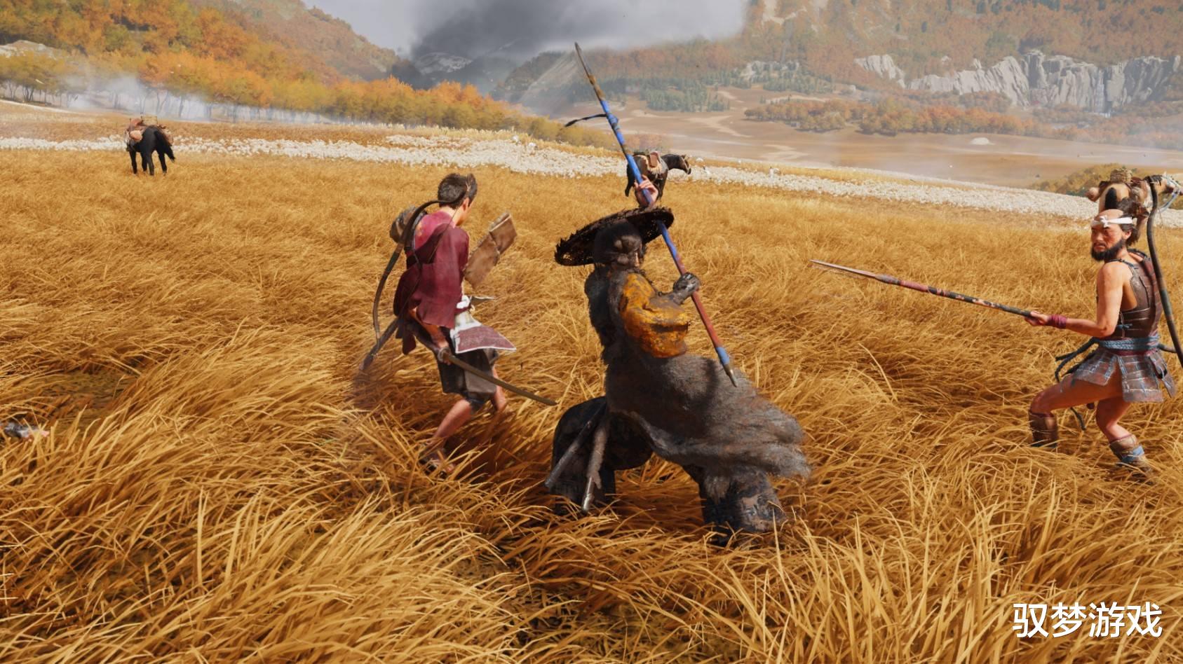 刀的平衡性最适合新手,□键速攻衔接△键重击的 “居合斩” 能快速破防;枪的长距离戳刺在对付骑兵时堪称天敌,我曾用长枪在马上挑飞三个敌人,全程未落地;而锁镰的大范围横扫与拉拽功能,在群战中简直是 “控场神器”—— 一次偷袭敌营,我先用锁镰将哨兵拉进草丛暗杀,再横扫击飞冲来的步兵,最后切换刀进行处决,整套动作一气呵成。