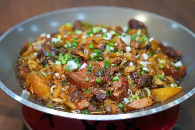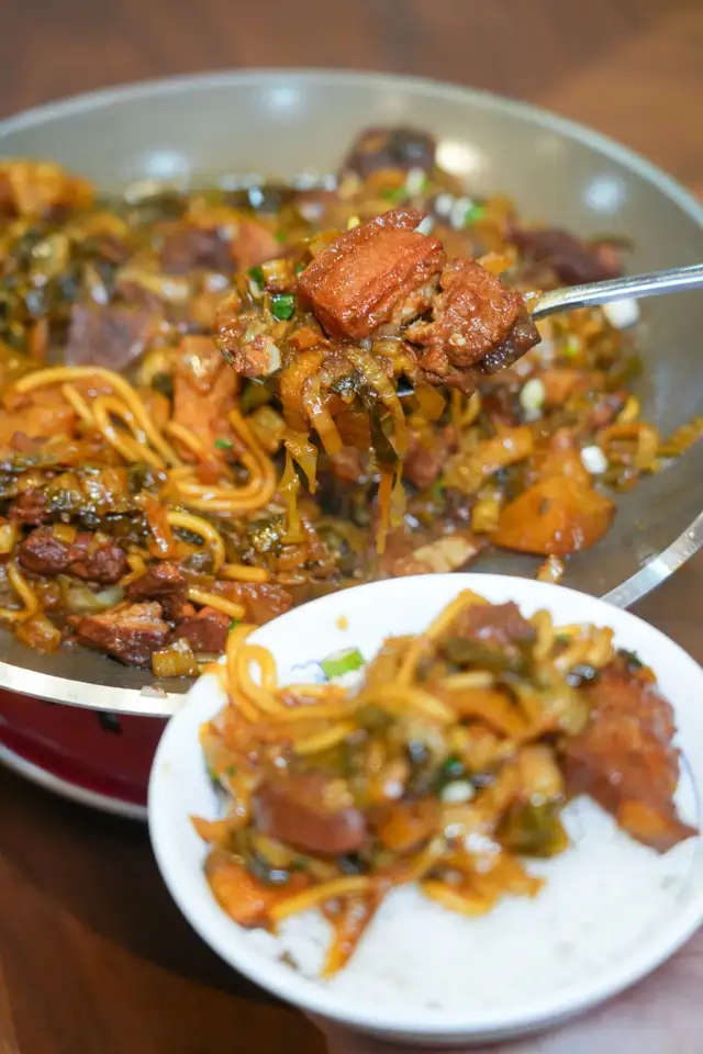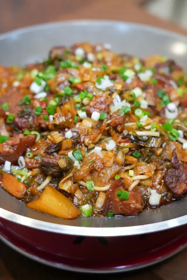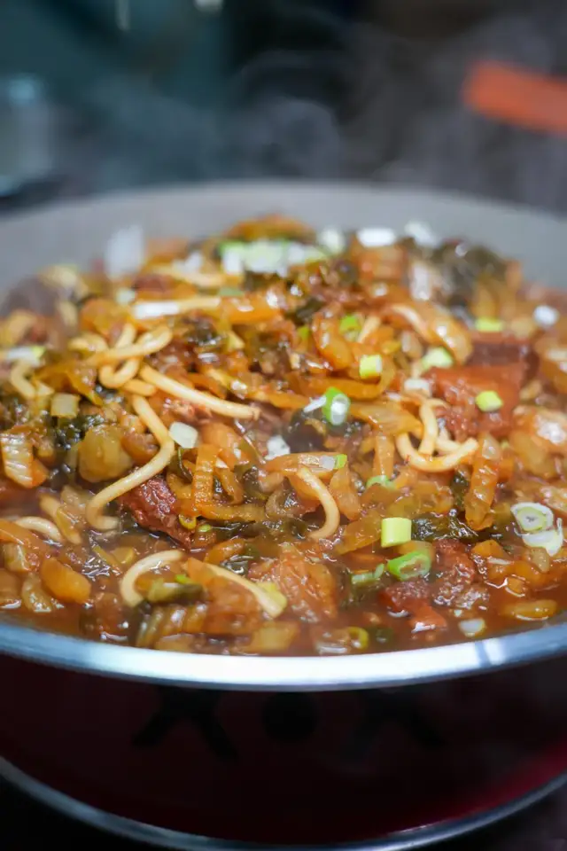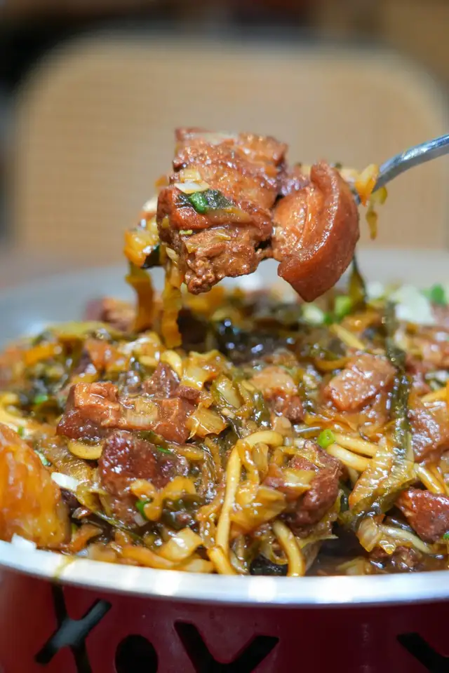 每一锅都是现做,选用的是沙瓤红皮土豆,内蒙酸菜,加入西吉粉条,浓郁西北特色食材汇聚一锅,锅锅现做,上桌就看得出,沙面的土豆裹着土猪肉,一勺子盖在米饭上,妥妥下饭菜!
