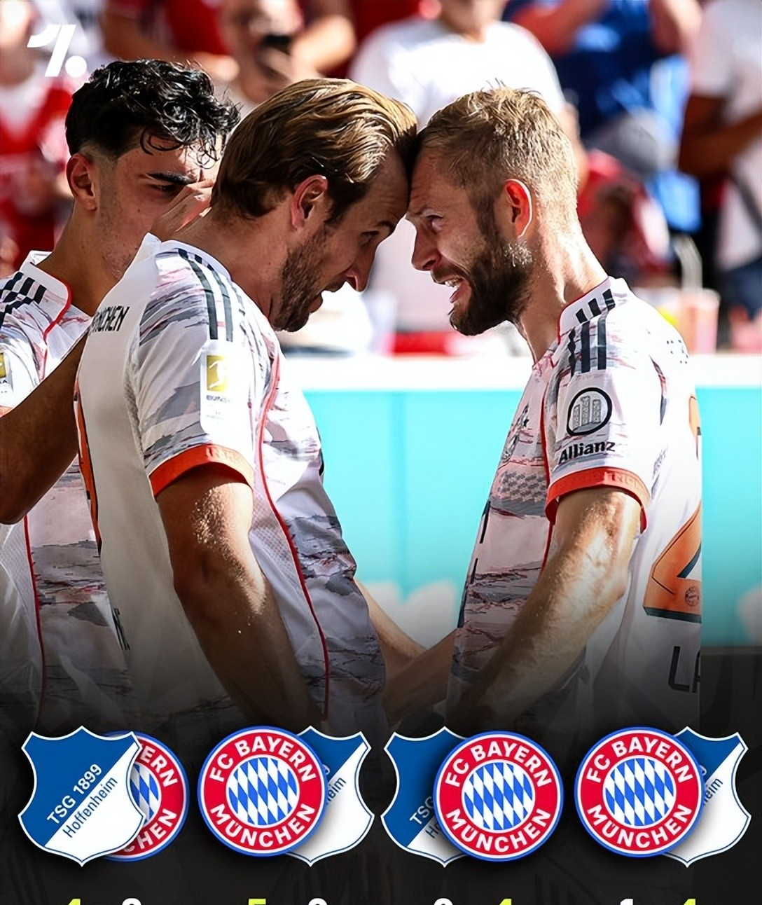 更当然的是,其实霍村和拜仁最终所呈现的结果,的确也符合两支球队近来交锋的最大特点、进球多--从23/24赛季的次回合较量、霍芬海姆主场4-2大胜拜仁至今的4场联赛对话,双方的比赛共计打进了20球、场均5球。