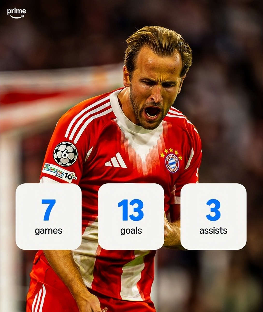 而本赛季的凯恩到底有多么高效呢?7场正式比赛全部首发的他,取得了13球3助攻的惊人成绩单。其场均可以制造2.29球的结果,无疑让凯恩看上去正在经历一段最美好的拜仁时期。