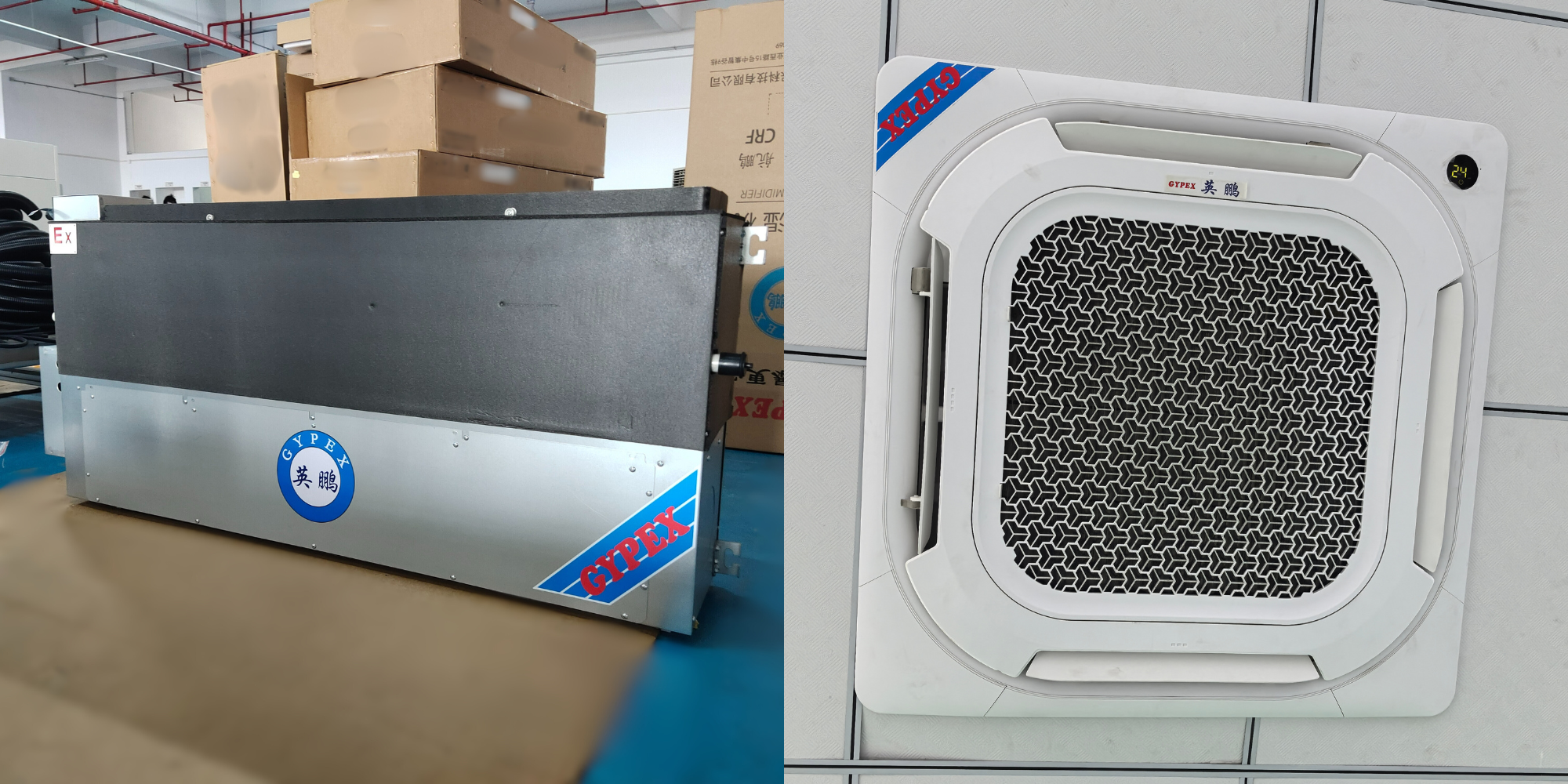 举例:防爆风管机常被用于构建小型的中央空调系统,而四面出风的防爆天花机则在注重美观与舒适度的环境中备受青睐。