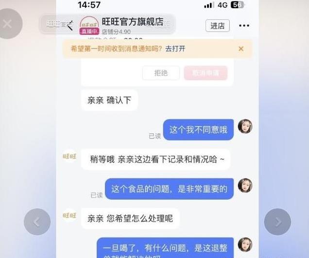 发现问题后,孩子母亲立马联系了旺仔官方客服,把事情告之,旺仔也知道,这种事情处理不好,将会比较麻烦,想都没想便同意退货退款。