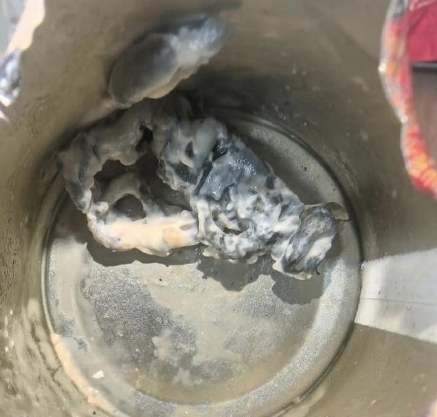 于是,父子俩一探究竟,把剩余的牛奶倒出来,牛奶全部倒出后,摇晃了下,发现瓶子里竟还有东西。