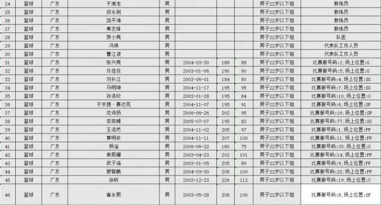 广东队公布全运会名单,备受瞩目的崔永熙出战U22组别比赛。