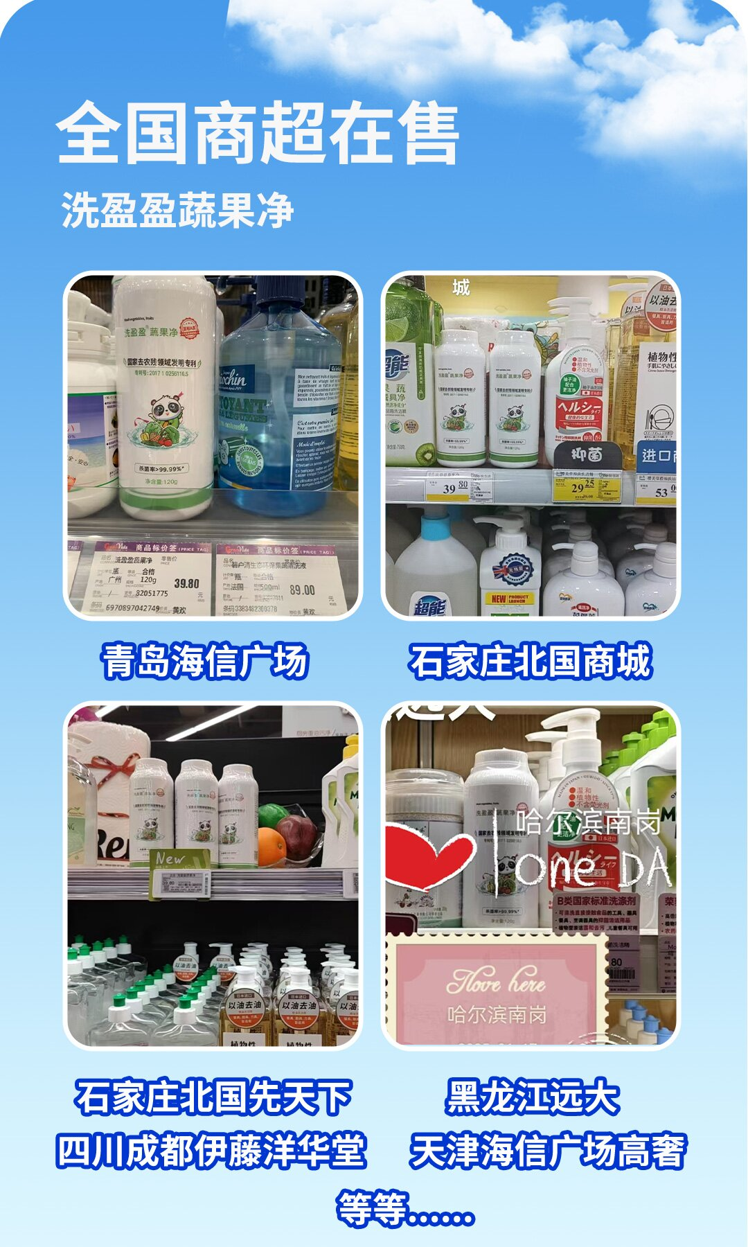 在青岛海信广场、石家庄北国先天下、哈尔滨远大、成都伊藤洋华堂等精品百货的货架上,泡小花旗下的洗盈盈系列果蔬静以其独特的科技理念与纯净体验,成为了注重生活品质的家庭的默契之选。这些商场对入驻品牌严苛的品质审核,恰恰印证了泡小花从原料、技术到成效的全链可信。