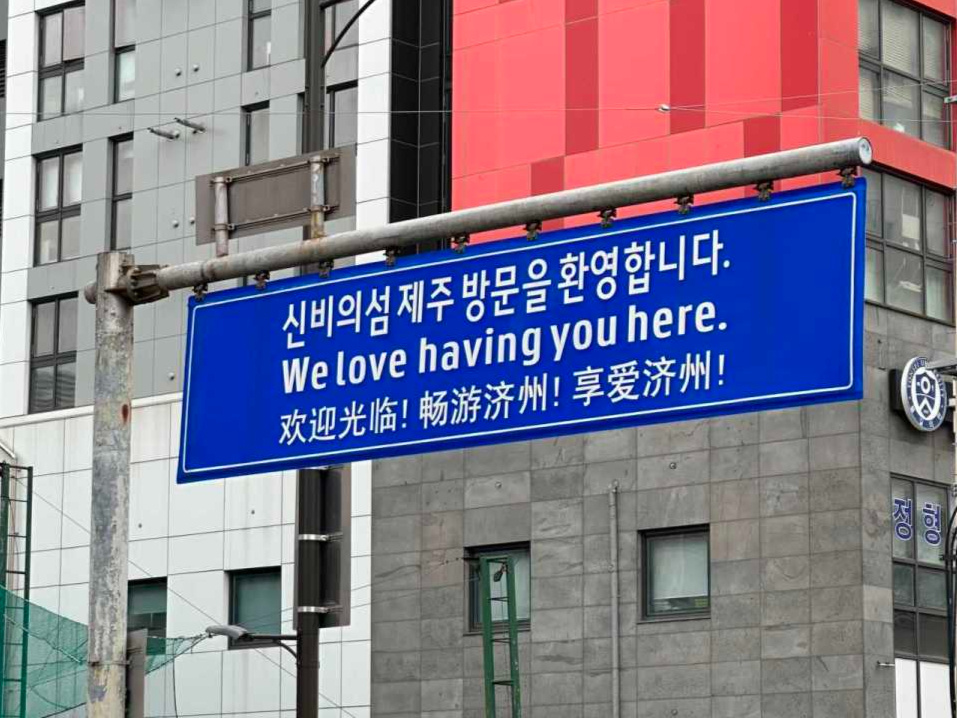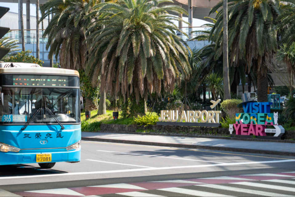 第一章|初见济州在大厅里定了定神,找到办理电话卡的柜台,旅途的第一步,是重新接入这个信息 万象 的世界。我从背包深处翻出那张五年前在 首尔 买的交通卡,抱着试试看的心态在储值机上刷了一下,竟然显示还有余额!那一瞬间仿佛收到了自己五年前埋下的一份彩蛋,一笔来自过去的“巨款”,我心里暗暗惊叹:原来冥冥之中自有定数。机场大厅里人流涌动,人人都在朝着各自的目的地匆匆奔忙,大家的步履匆匆和我的气定神闲全然不同。并非我天生沉稳,而是我有点没准备好迎接即将开始的济州之行。这是我第一次踏上一段几乎毫无计划的旅行。出发前,我只是随意地在笔记本写下几个关键词:徒步、晒太阳、看海、放空。除此之外,一切未知。我走出航站楼,在公交站台等候一辆开往市区的巴士。上车后,我坐到了最后一排靠窗的角落,阳光斜斜照进来。我望着窗外不断后退的风景,那些陌生的文字、街道、招牌、远处的山海在午后的光影中轻轻展开,我终于开始了这场没有剧本的旅程。