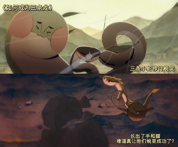 为了保住“饭碗”,他们用最笨的办法来回挑水、浇地,甚至最终以身入局,引雷劈山,为村民降下甘霖。 导演杨木透露,最初想创作龙的故事,但最终选择从“小人物”切入,因为龙的前身是蛇,加之恰逢蛇年且自己属蛇,便确定了以三条小蛇为主角。 他坦言作为第二季首个亮相的作品压力很大,感觉“好像接力赛跑在第一棒”。