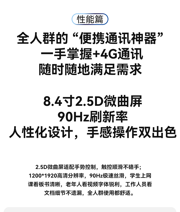 BPad T1在设计上追求出色的便携与质感。8.4英寸2.5D微曲屏,配合1200*1920高清分辨率,单手握持感出色,触控顺滑。仅316g的重量和7.6mm的厚度,让它可以轻松放入口袋,真正做到“一手掌握全场景”。