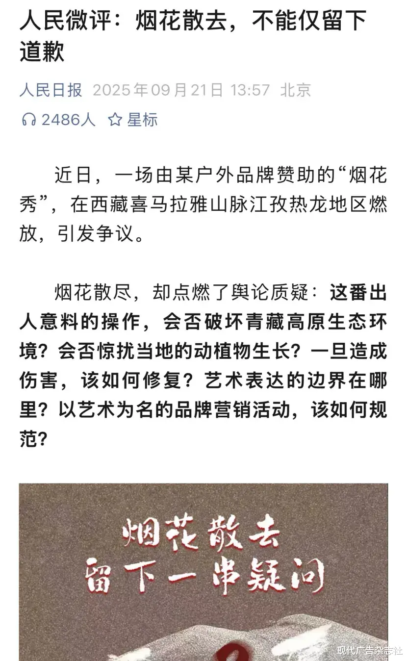 值得注意的是,官方层面的介入使事件进一步发酵。日喀则市互联网信息办公室第一时间成立调查组,人民日报评论《烟花散去不能仅留下道歉》,新华社亦直言《放错了地的“烟花秀”,再美也是破坏》。当事件从舆论层面上升为政府与权威媒体的关注焦点,始祖鸟所面临的已不仅仅是一次公关危机,而是一次品牌根基层面的价值观危机。