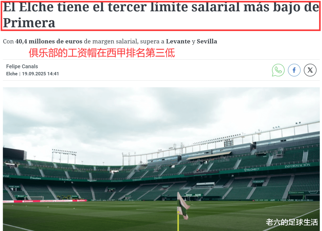 俱乐部目前是西甲联赛里工资帽第三低的球队,在往下就是莱万特和塞维利亚,但他们的成绩与这两支球队天差地别。