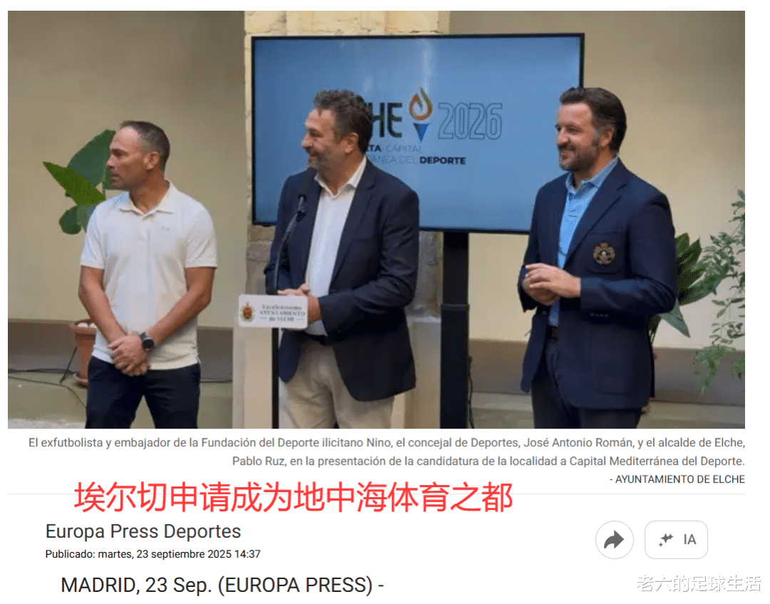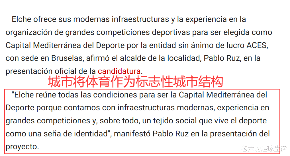市长帕布罗·鲁斯强调市议会坚定发展体育领域并表态当地体育界正经历黄金时期,自然指的就是埃尔切这支球队。