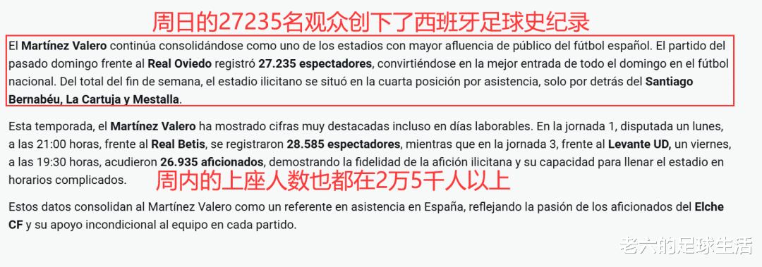 上周日他们对阵皇家奥维耶多的比赛吸引了两万七千多名观众,直接创下了西班牙足球史上周日上座率最高的纪录,在周末的总上座率中,他们位于第四,仅次于皇马、塞维利亚和瓦伦西亚。