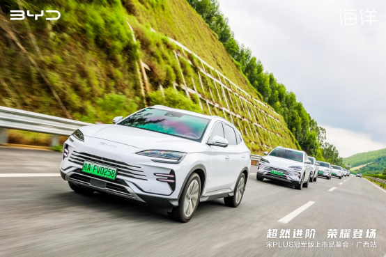 在通往广西上林的山路上,宋 PLUS 冠军版展示出了卓越的驾驶性能。它在加速和弯道超车时都表现出灵活且从容的特点,给人以极致的驾驶快感。在需要迅速加速时,电机能够迅速响应,加速超车能够流畅完成,使得整个行驶过程平顺而细腻,超然而又不断进步。这是纯燃油SUV很难达到的性能表现。