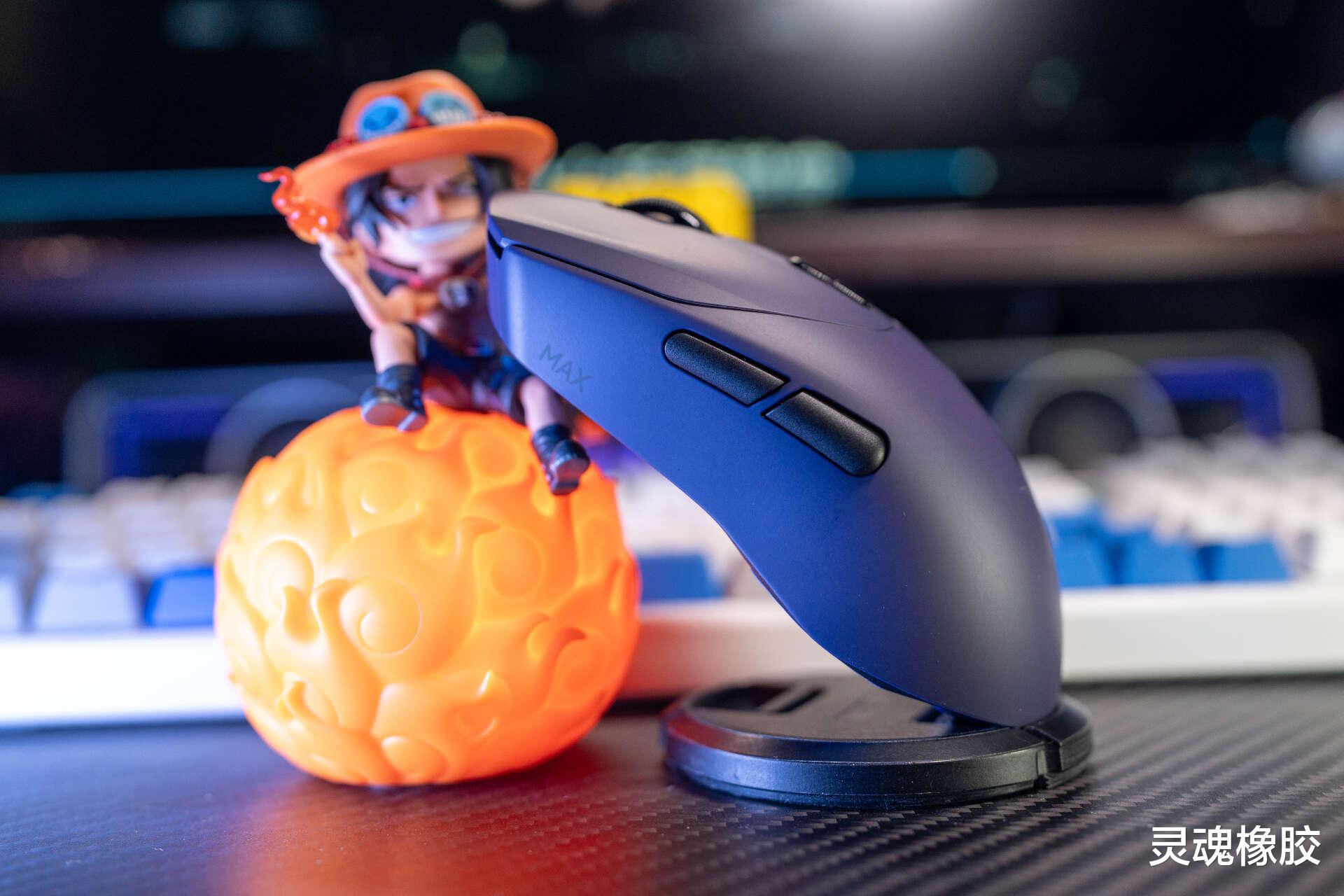 侧面看一下鼠标的造型,好像一辆跑车般优雅,两个侧键,设计的比较宽大,方便使用,也不易误触,鼠标内侧的左下角有MAX字样,低调又奢华的感觉。