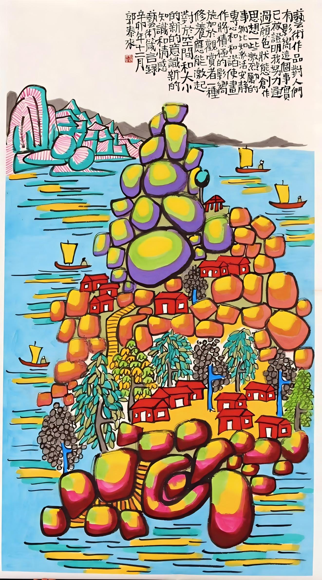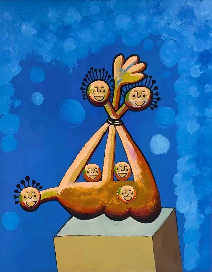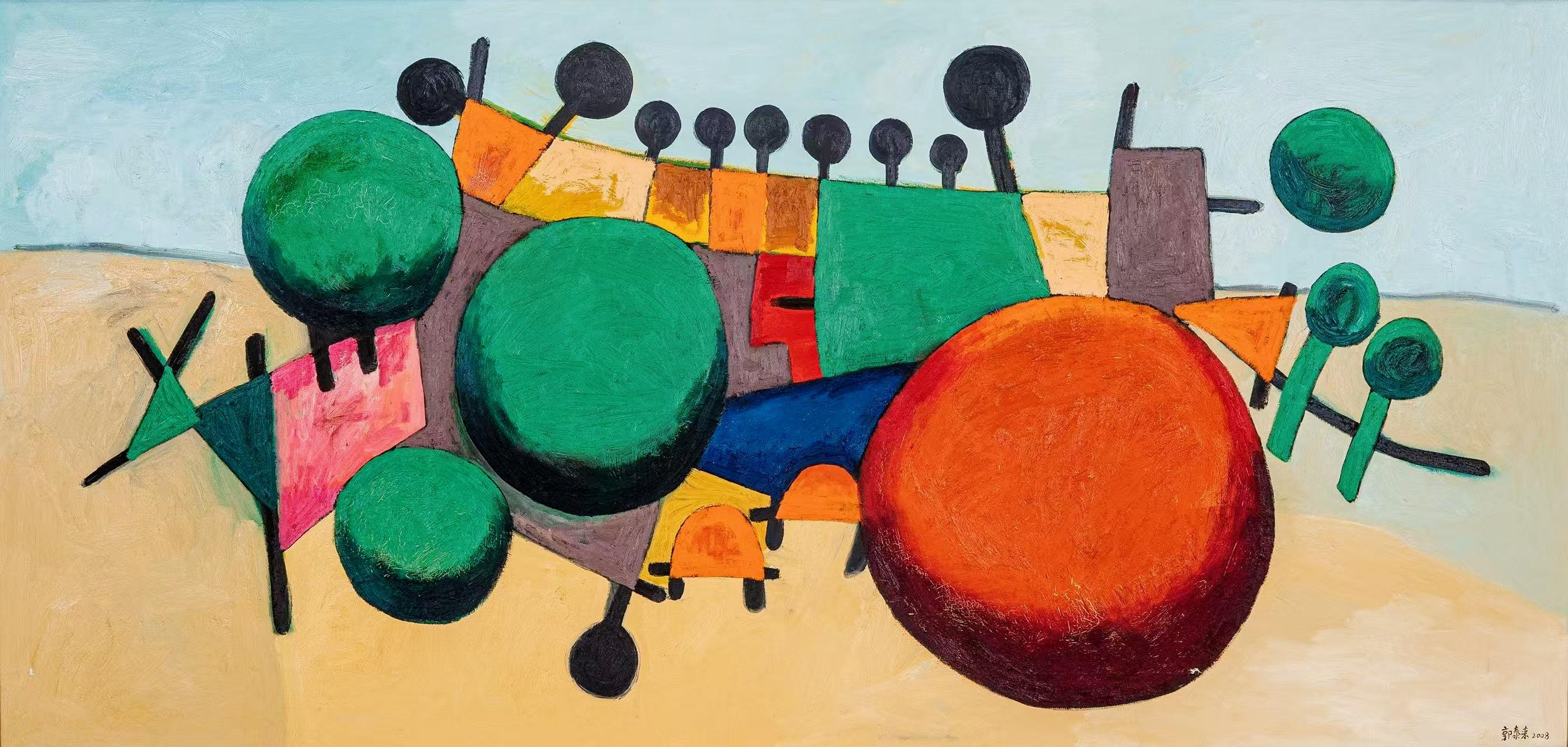 在这个系列作品里,郭泰来运用极其丰富、强烈却又和谐统一的艳彩技法,如魔法师般,为作品注入了鲜活的生命力。这些色彩相互交织、碰撞,构建出一个超越现实世界的瑰丽奇幻之境。在这个世界里,充满了蓬勃的生命律动和强大的精神能量,仿佛能让人感受到宇宙的脉搏和生命的呼吸。