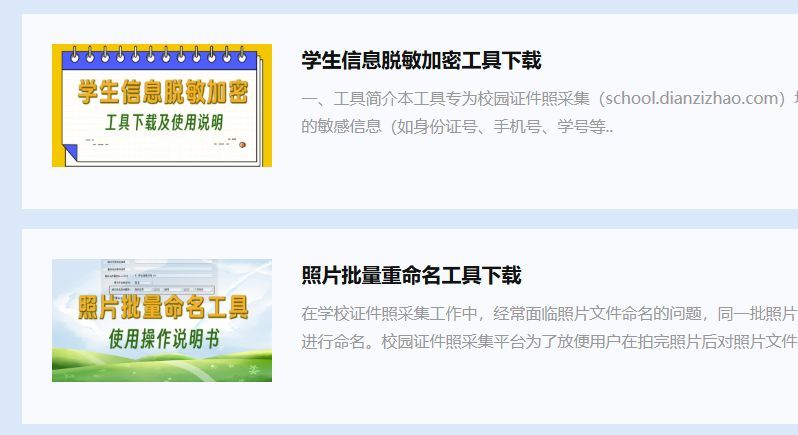 以上工具可以在“校园证件照采集平台”首页的下载中心栏目中获得,均为免费绿色软件,解压缩后可以直接使用。