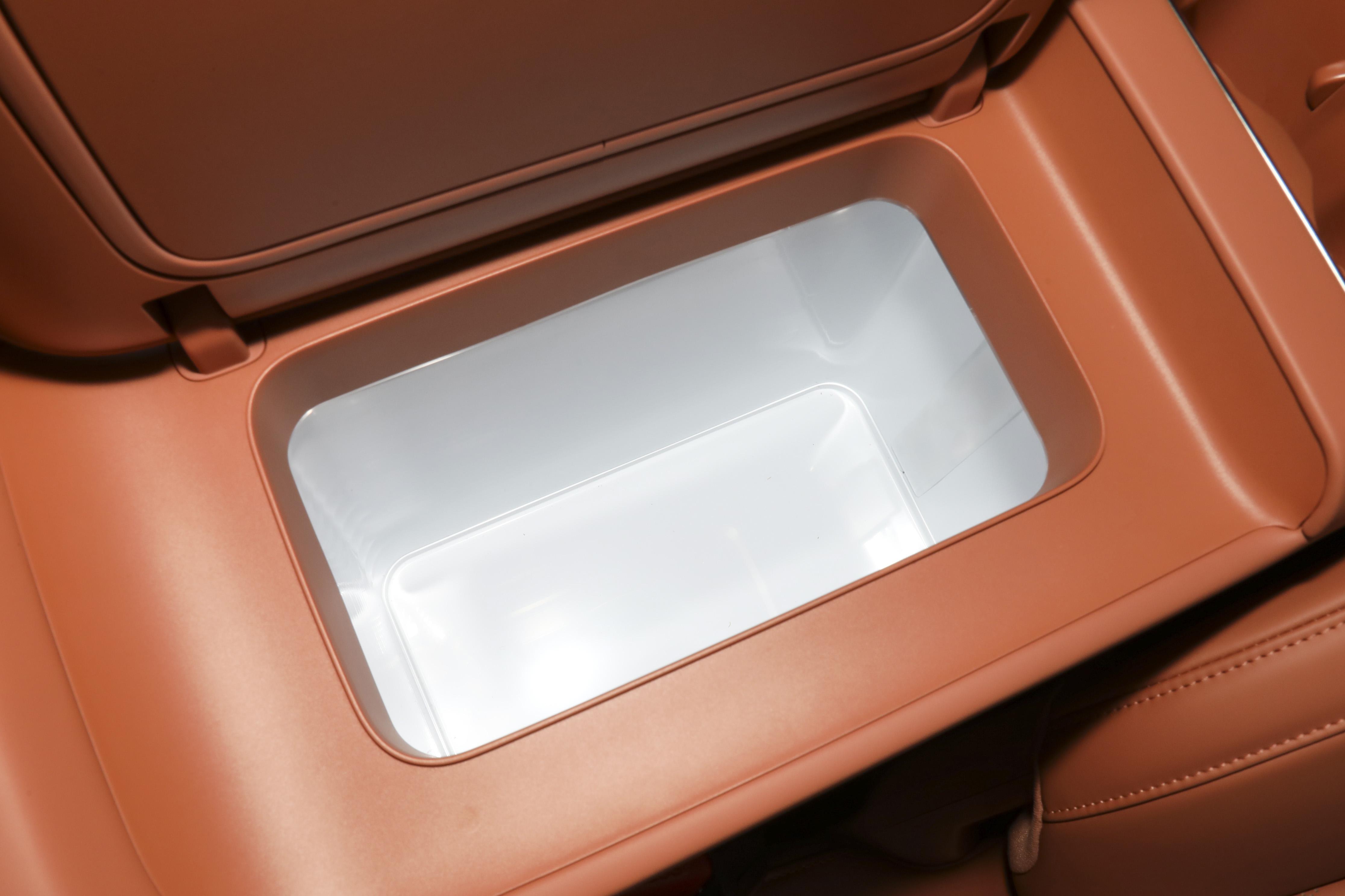 中控台下方内置8.1L冷暖冰箱,制冷最低可达-6℃,加热最高50℃,可存放饮品、儿童辅食等物品,满足日常及出行场景需求。六座版车型第二排配备可折叠小桌板,支持语音控制开启,开启时座椅会自动调节至合适角度,可用于放置零食、办公用品或供儿童书写,实用性较强。