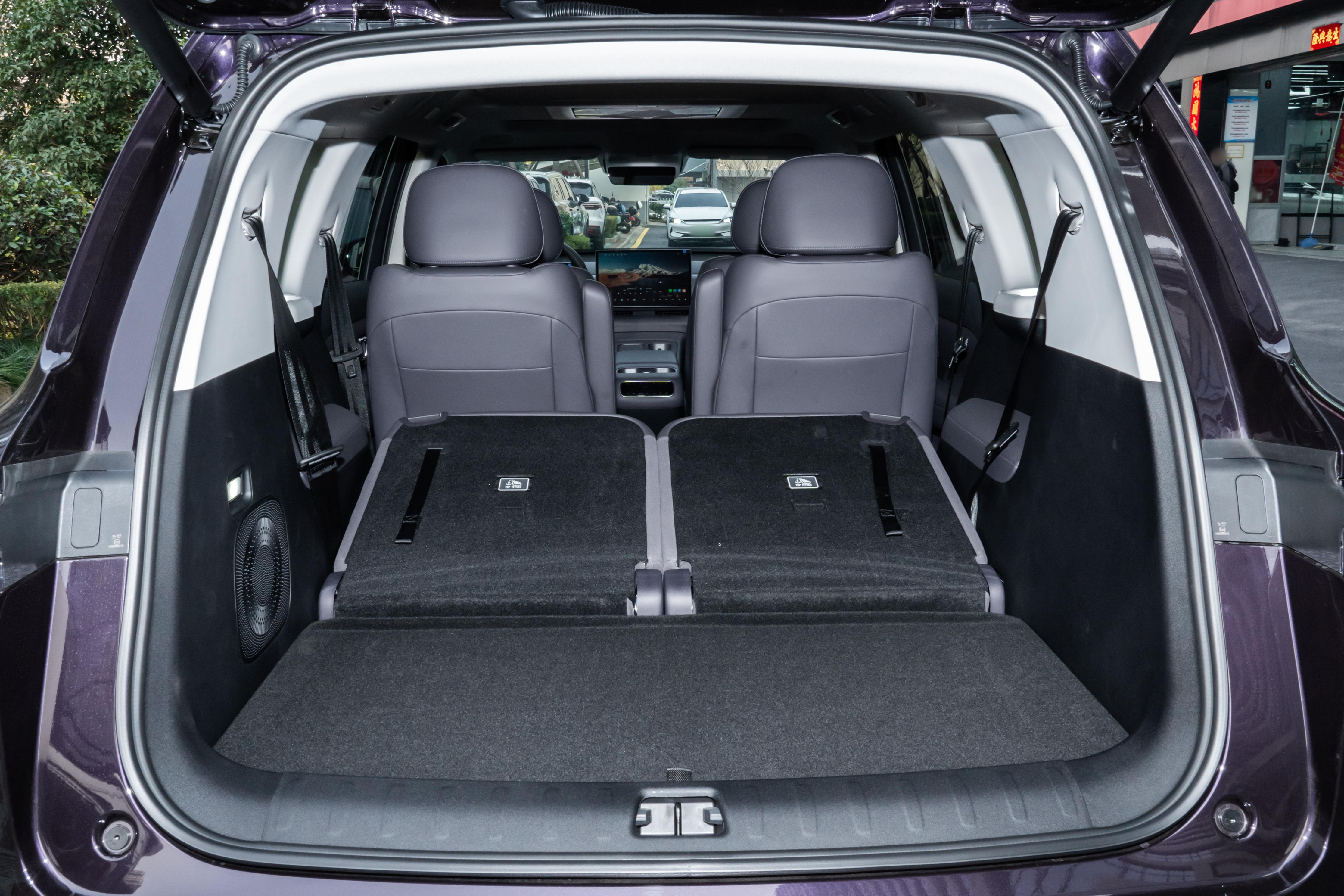 后备箱常规状态下可容纳两个20寸行李箱及少量杂物,第三排座椅放倒后,进深可达1.5米,能放置婴儿车、露营装备、折叠自行车等物品。车内还设计了多处储物空间,门板、中央扶手箱、座椅靠背口袋等可分类存放随身物品。此外,车辆支持3.3kW对外放电功能,可满足户外用电需求。