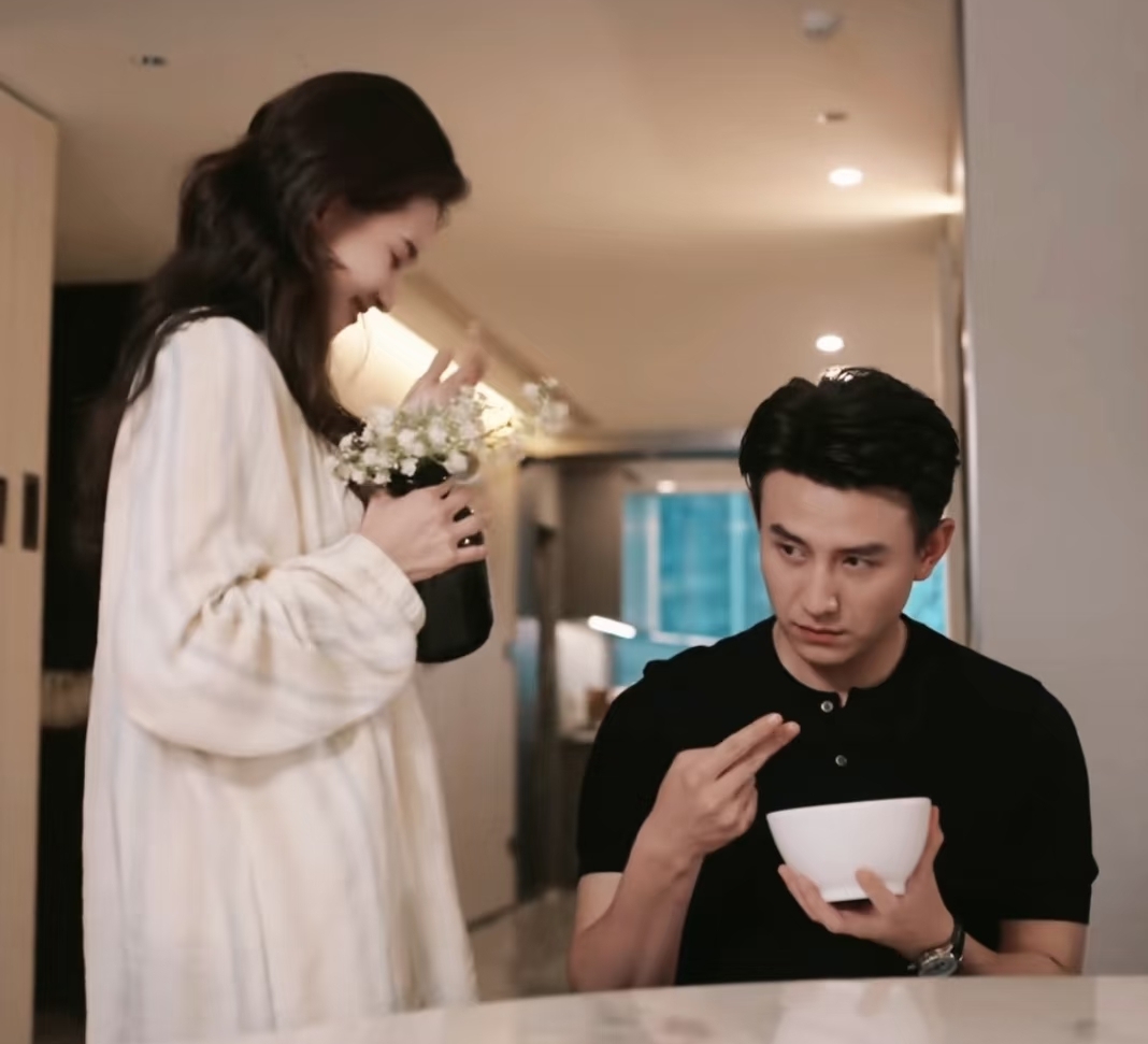 他的温柔全藏在细节里:女主想自己做饭却不会开灶台,他就默默做好一碗面端上来,尽管一开始面都没煮熟。