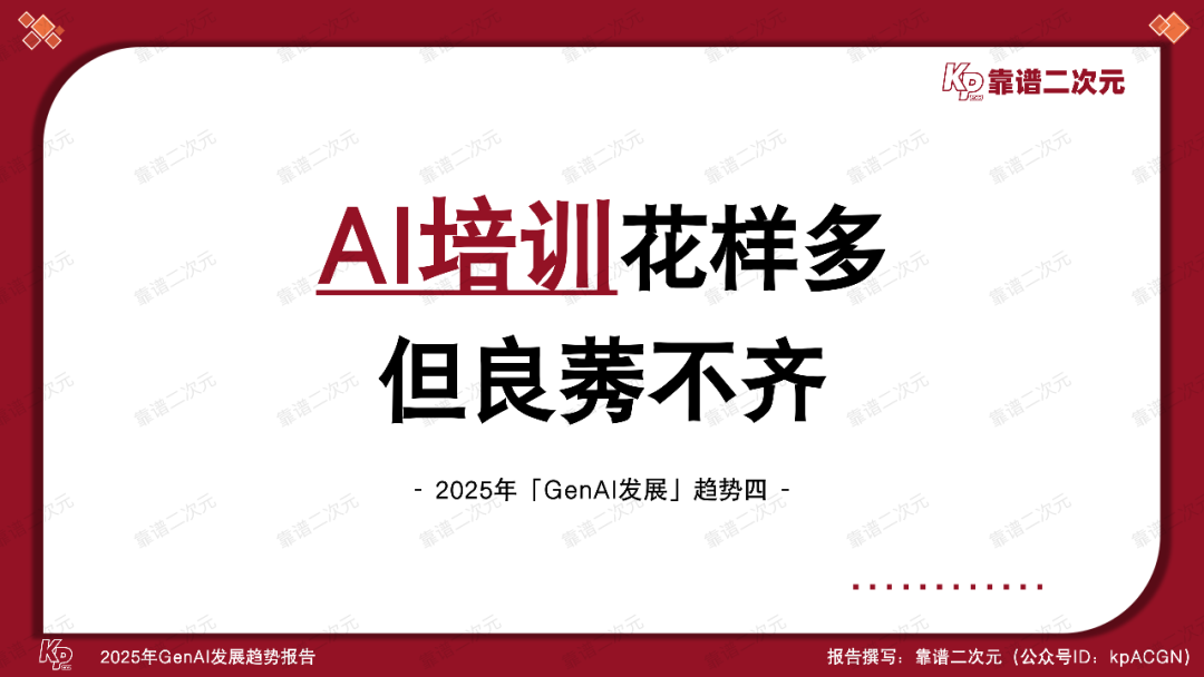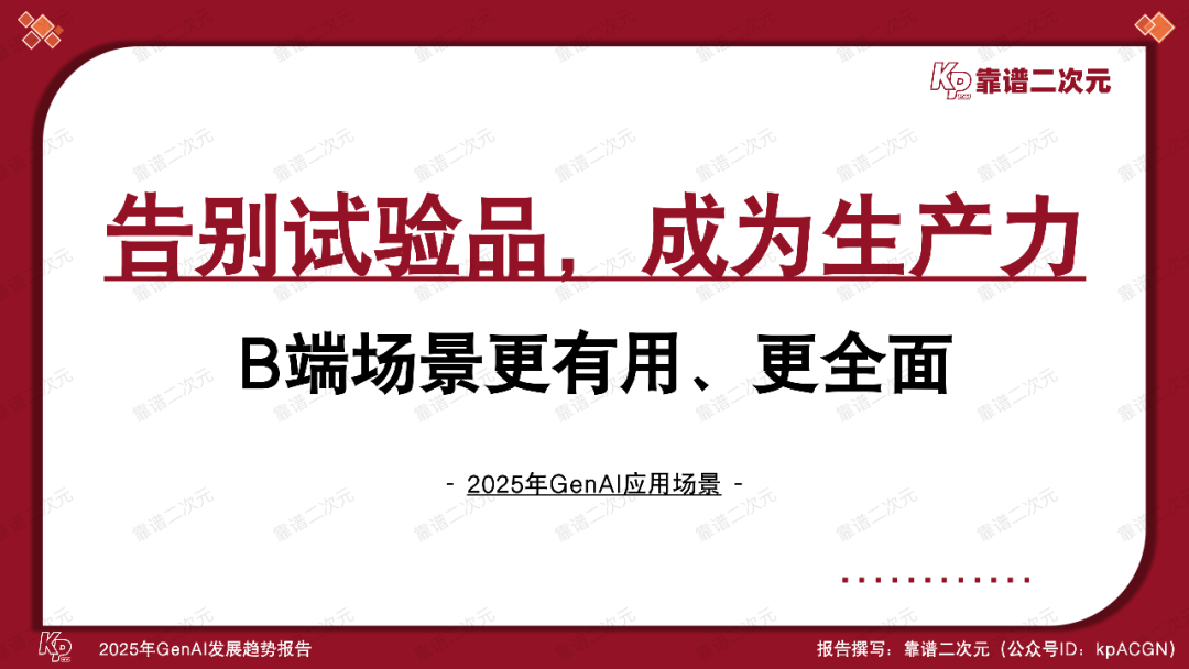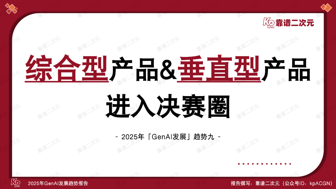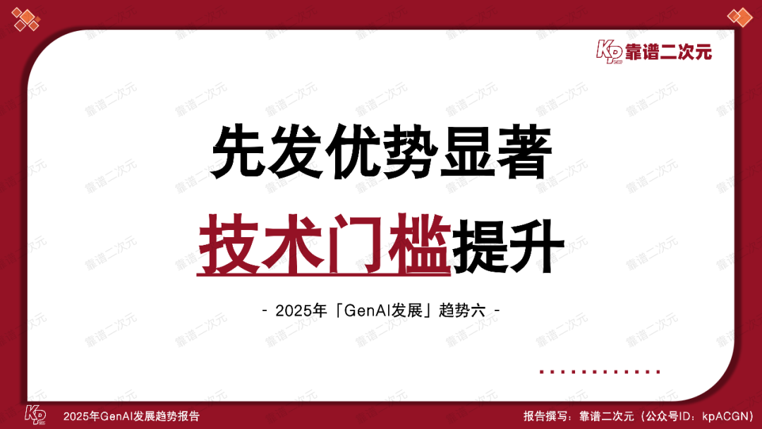 通过分析最新GenAI发展动态,梳理各领域工作流,结合多年来与从业者深入交流的经验,靠谱二次元(公众号ID:kpACGN)得出2025年GenAI的「十大发展趋势」,接下来根据产业现状进行逐条解析。