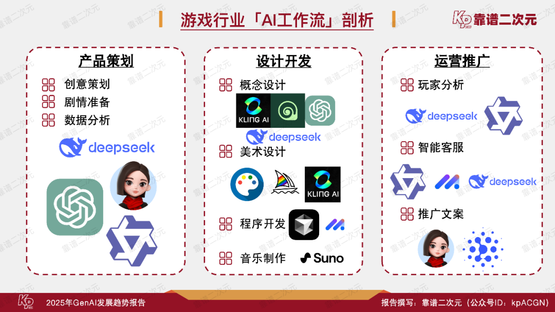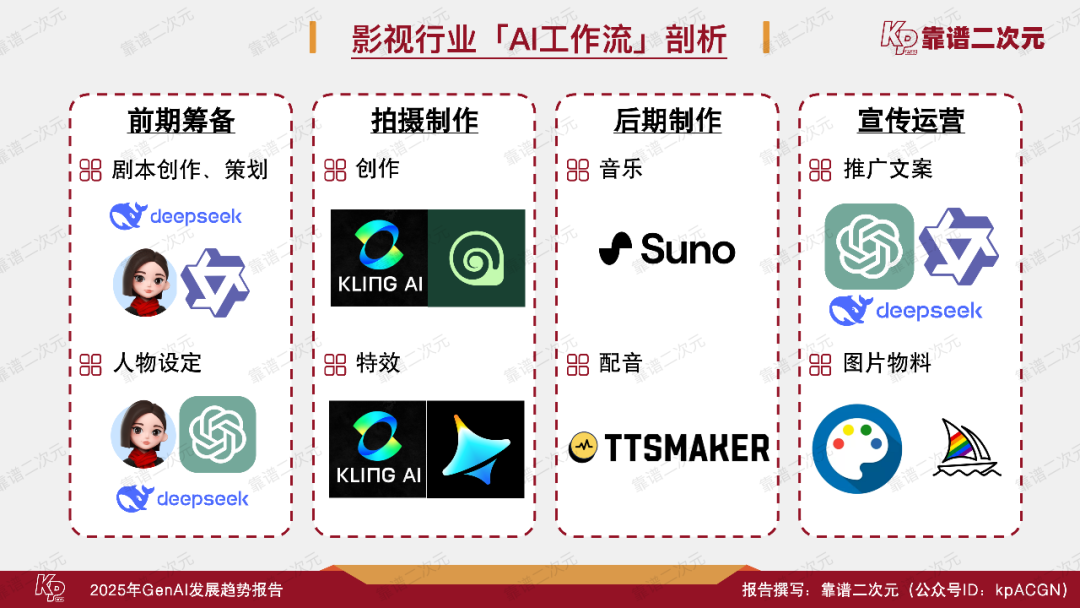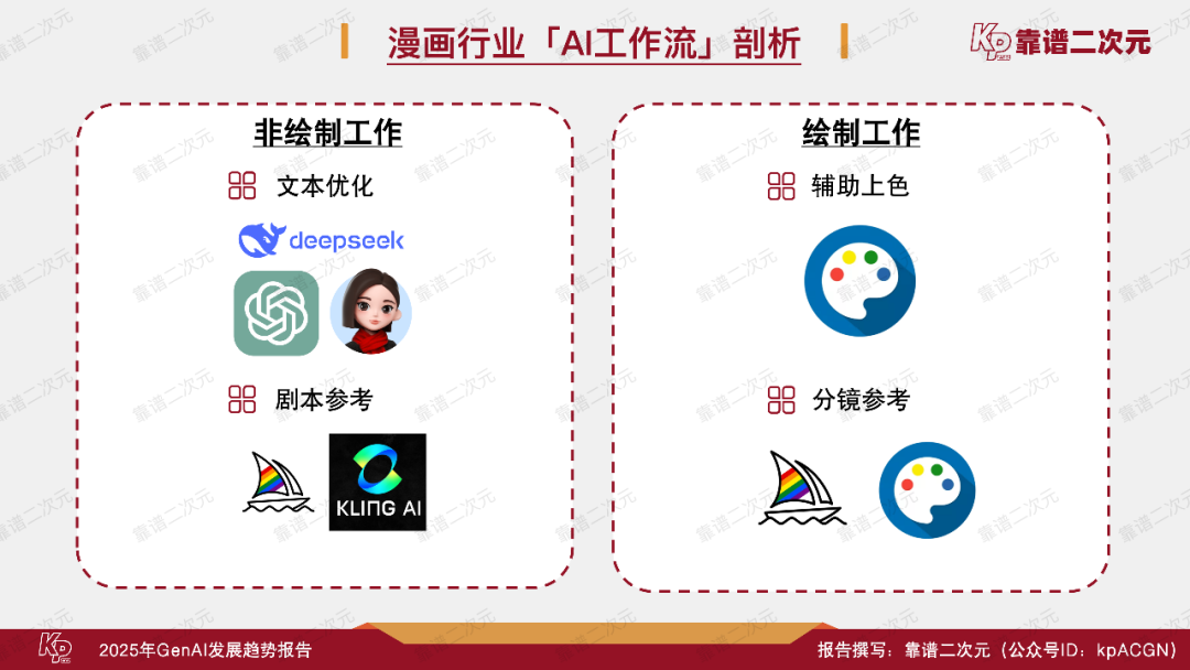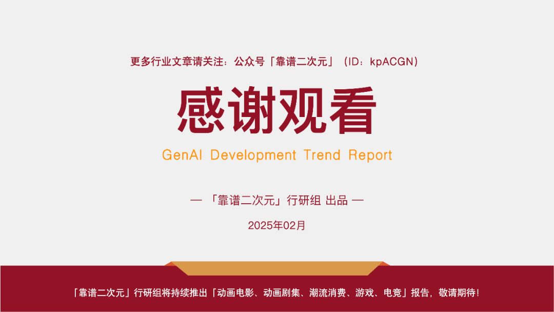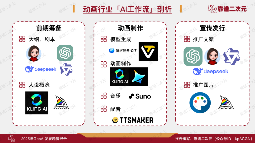2025年2月,靠谱二次元(公众号ID:kpACGN)重新梳理了现阶段泛娱乐产业——包括动漫、游戏、影视、网文产业相关的GenAI技术发展现状,并首次将常用工具与行业工作流进行结合,剖析文娱行业AI工作流的流程,综合行业内的认知与展望,出品了这份《2025年GenAI发展趋势报告》,并通过本文进行详细解读,以期为业界后续在AI投入及应用方面提供新参考。