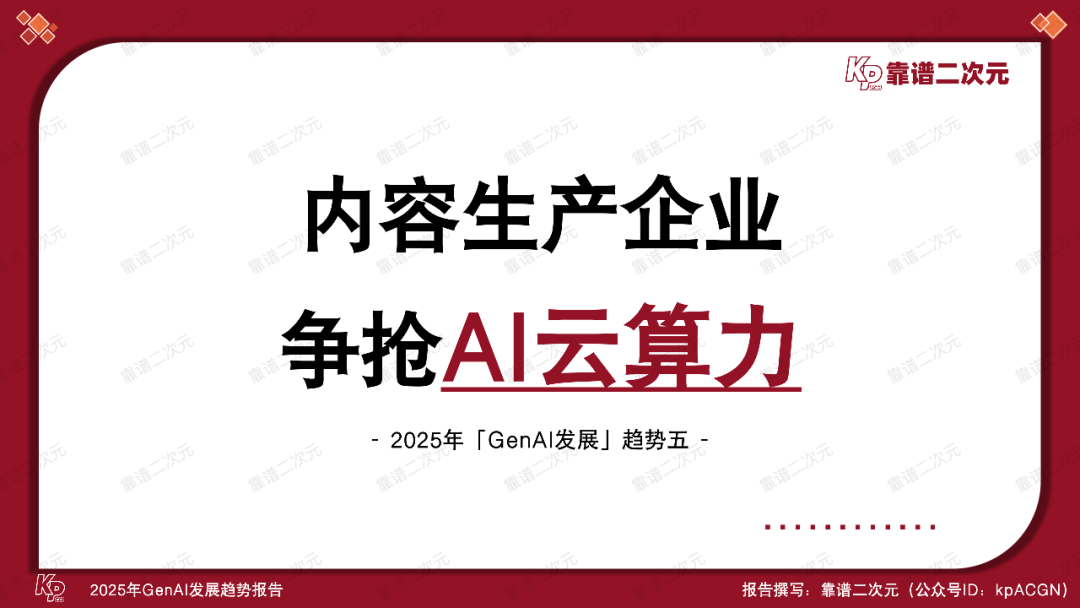 因此,2025年将成为AI算力生态的分水岭:当内容生产的边际成本与算力供给深度挂钩,拥有稳定算力保障的企业将在这一轮内容创新周期中拥有自己的优势。而对于云计算厂商而言,这场争夺不仅是商业机会的拓展,更是从“通用计算服务商”向“文化生产力基座”转型的关键一跃。