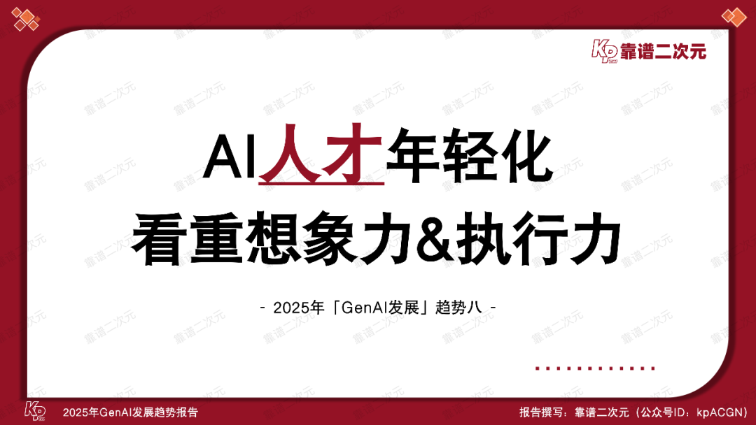 越来越多的年轻人在AI行业做出惊人成果,行业内关于AI人才的理解正在发生改变,以往在AI领域论资排辈、唯经验论的情况会在2025年被打破。和Web2.0时代开端类似,从业者对AI的认知尚未定型,年轻人的想象力和执行力在这一行业更具优势。
