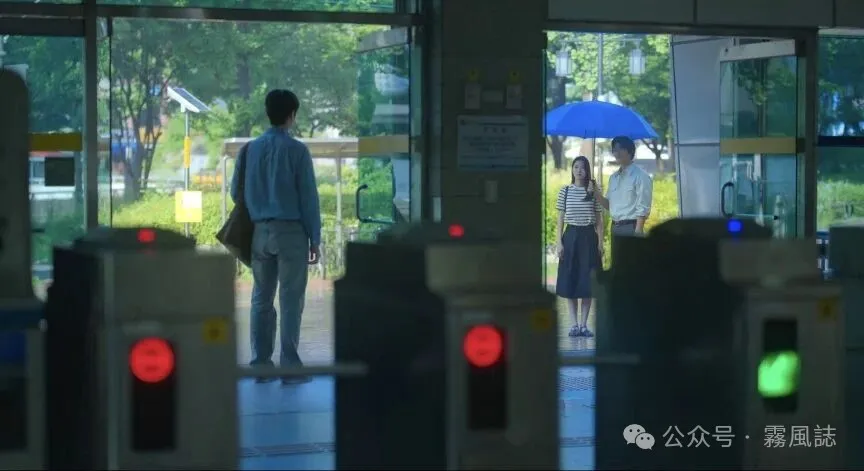 同时,周浩镇身后作为镜头前景的闸机显示红色禁行标志,右边则是绿色通行,这并非无意义的画面,而是象征着立场和关系的“整理”,从那一刻起,周浩镇在内心将这段爱恋整理为“禁行”。