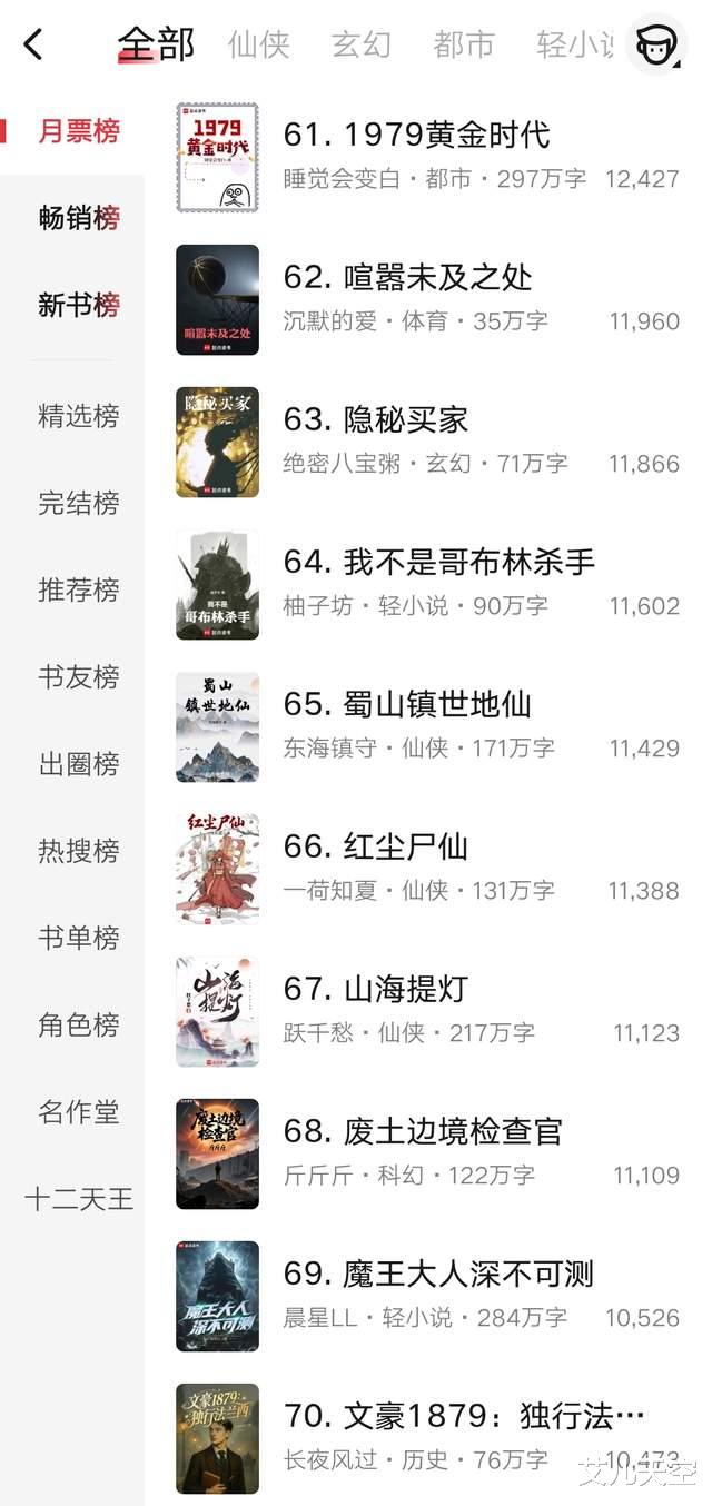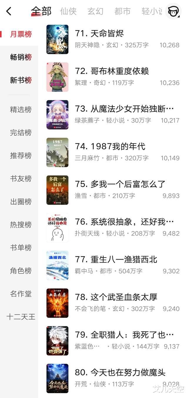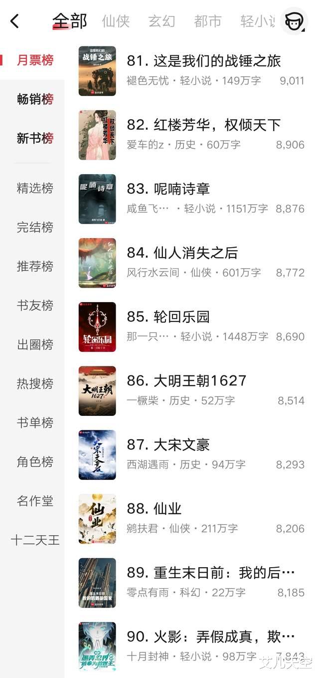 11、前百外的一些作品排名简单放一下,那么以上就是双倍结束后起点月票榜的一些情况,确实没什么新鲜感,也只是简单标记一下。