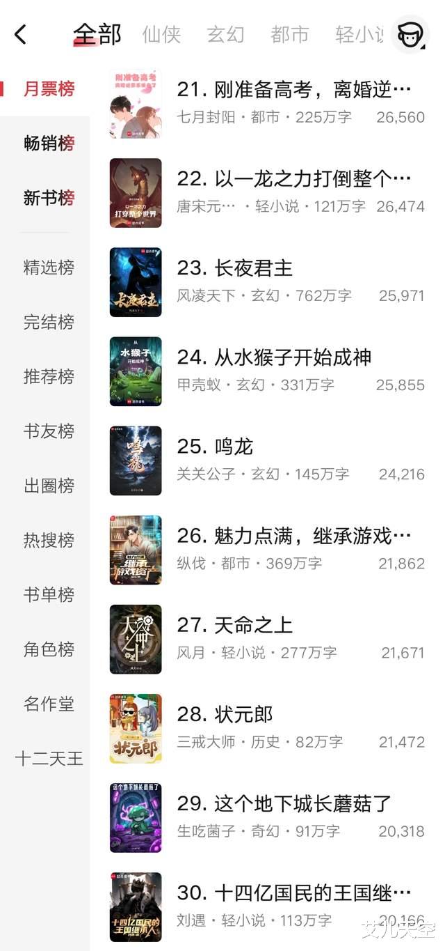 3、天命之上又结束了一卷第21到30名,风月的《天命之上》这个月开局比上个月高了不少,白邦卷已经结束,风月还在请假休息中。
